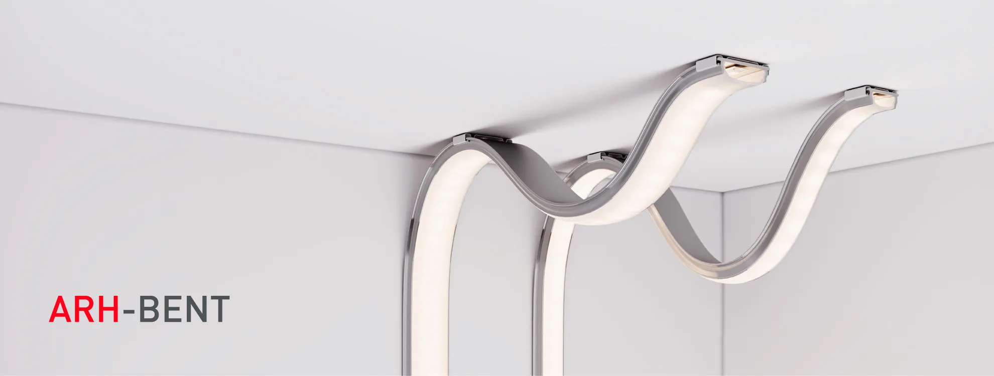Особенности Профили серии ARH BENT легко гнутся руками в поперечной плоскости, благодаря чему являются идеальным интерьерным решением для подсветки изогнутых поверхностей и создания декоративных фигурных светильников.