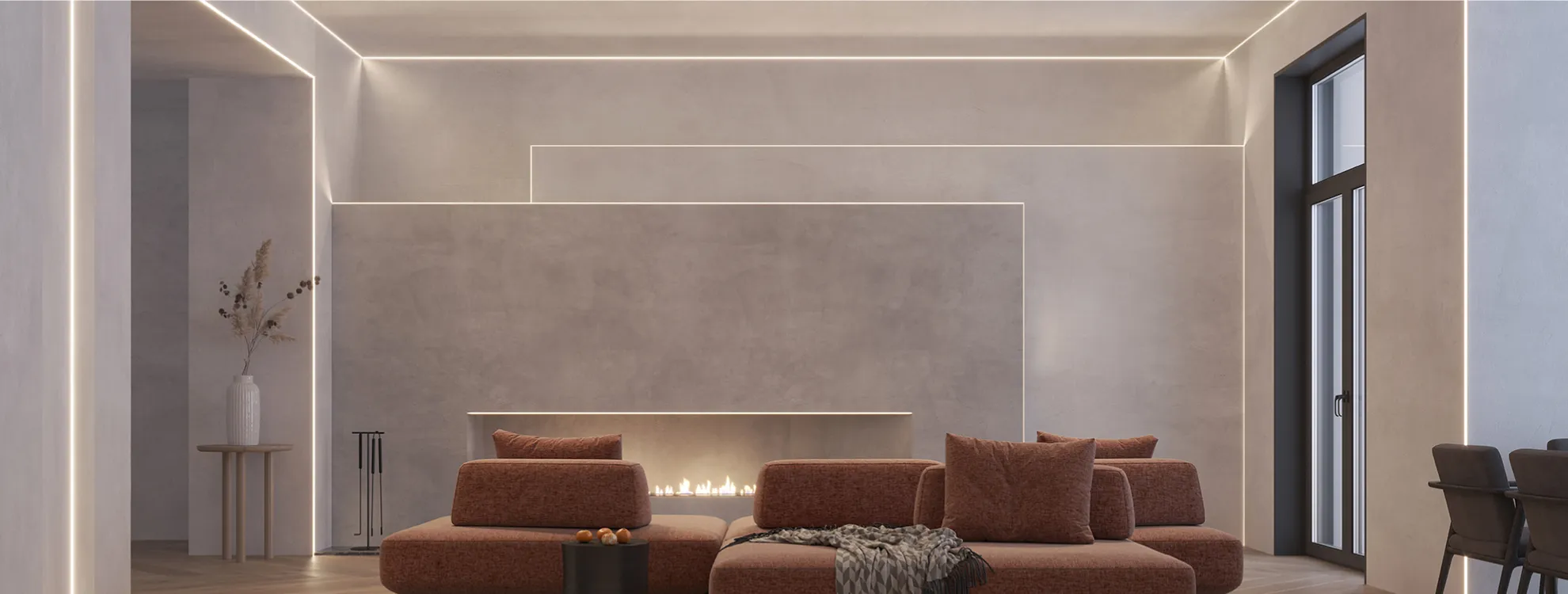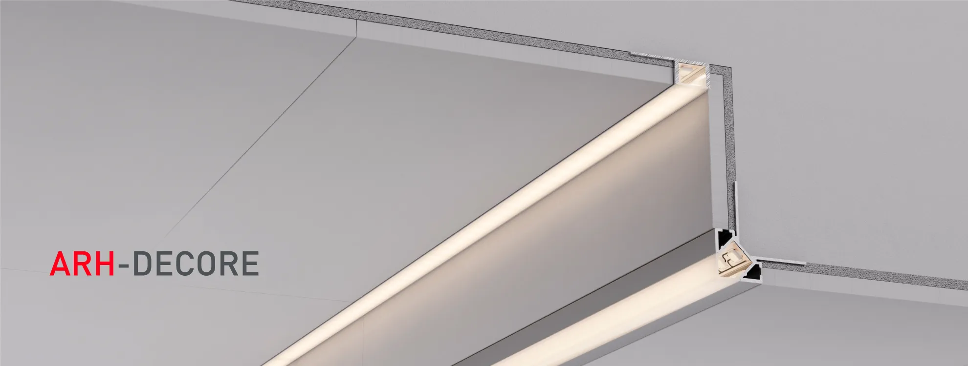 Скрытый фланец Конструкция профиля скрывается под строительной отделкой, благодаря чему видимой остается только световая линия.
