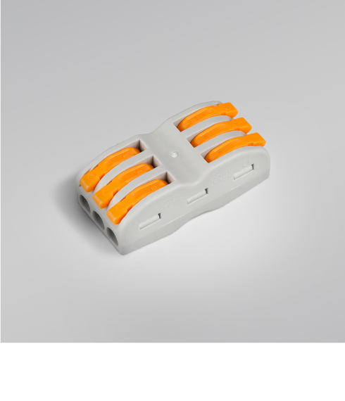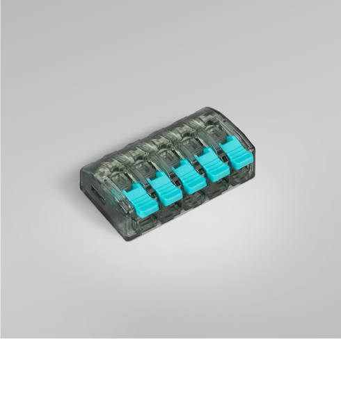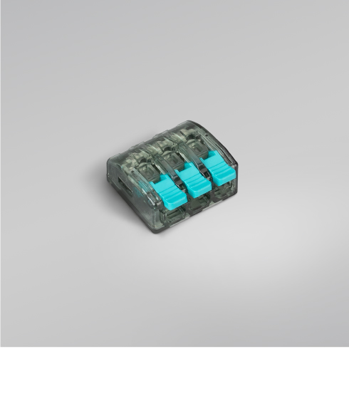 Благодаря рычажковому механизму зачищенные провода легко вставляются и фиксируются в клемме.
