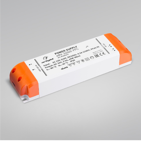 Блок питания ARV-SP-24060-FLAT-PFC (24V, 2.5A, 60W) (Arlight, IP20 Пластик, 5 лет)