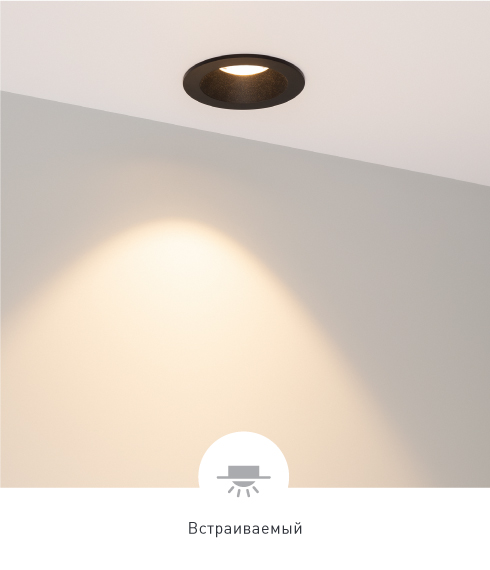 Вариативность угла излучения Среди даунлайтов ATOLL вы найдете модели с узким (36°) и средним углом излучения (60°), что позволяет создать в одном пространстве акцентное и основное освещение в едином стиле.