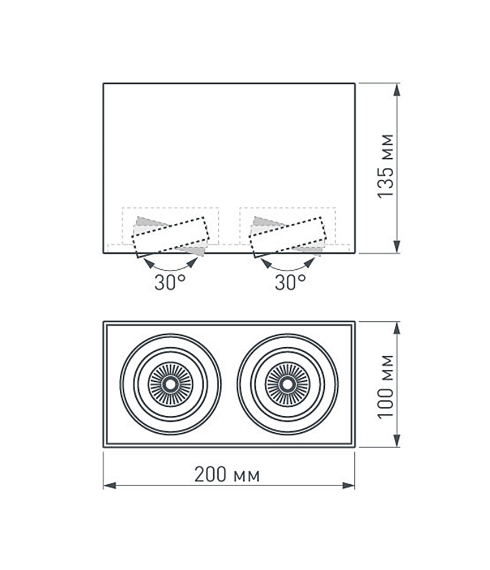 Поворотный механизм светового модуля позволяет направлять световой поток в любом направлении на 30°. Для этого вам не нужно открывать корпус светильника, использовать отвёртку или какой-либо другой инструмент. Световая сцена корректируется в считанные минуты.