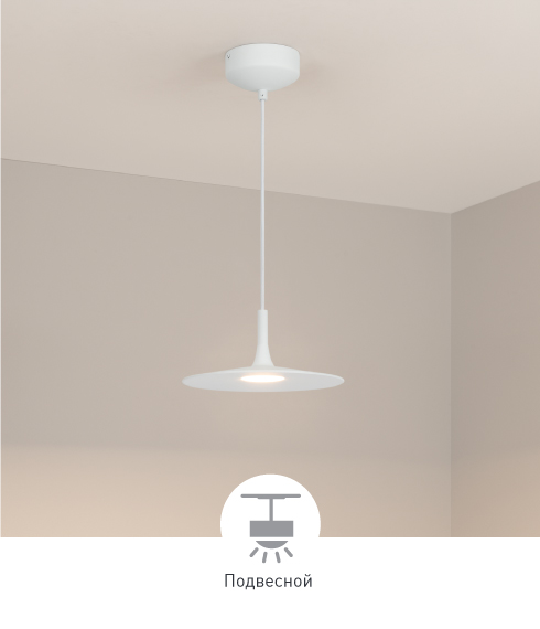 Черные и белые корпуса диаметром 250, 400 мм с регулируемым подвесом длиной 1500 мм. Мощность 8 и 13 Вт.