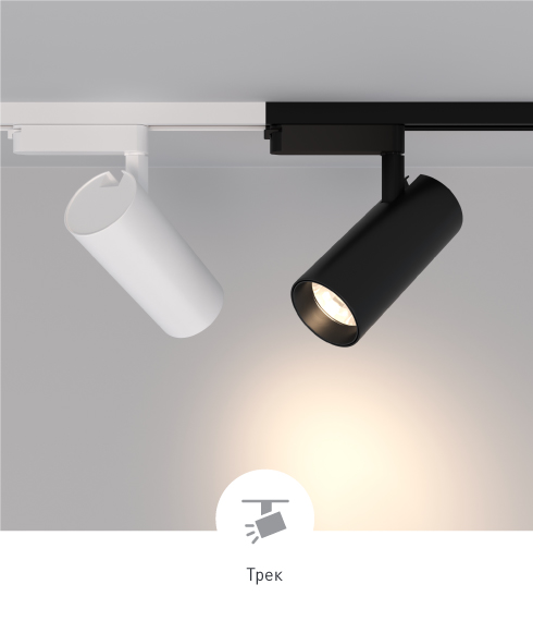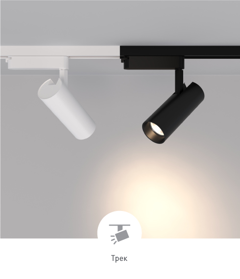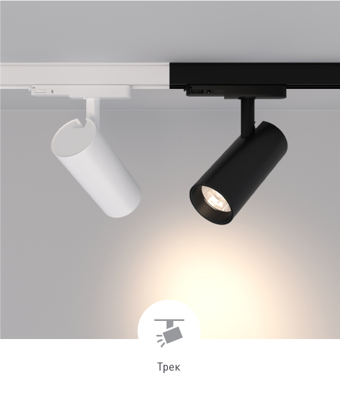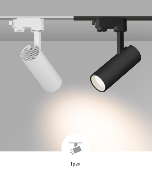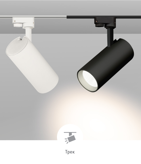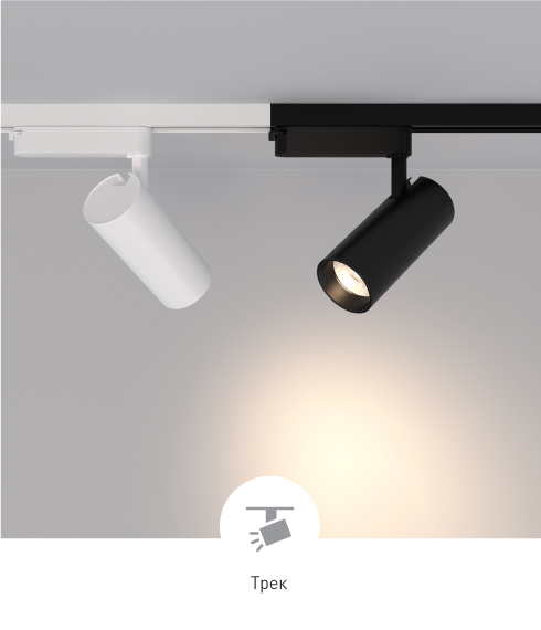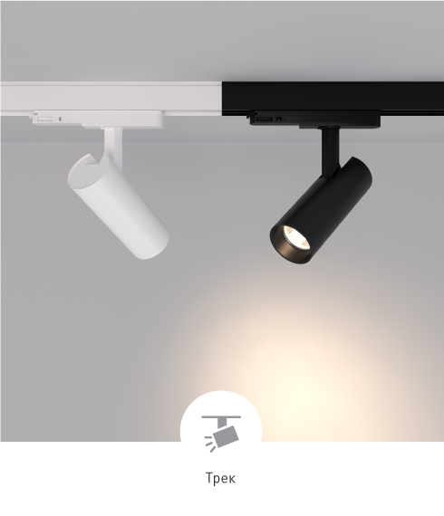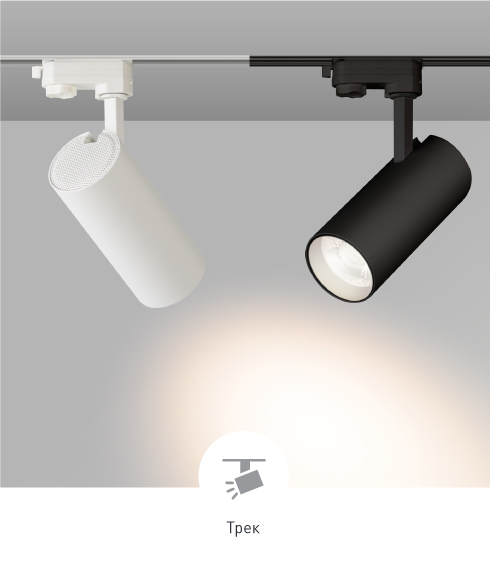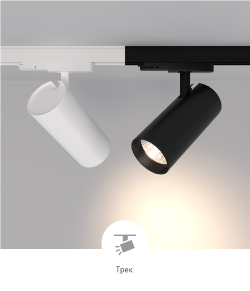 Трековые светильники разных моделей для трехфазной и однофазной шины. Легко перемещаются вдоль трека, вращаются на 355° и отклоняются на 90°, позволяя быстро менять световые акценты в помещении. Идеальны для акцентного освещения в музеях, магазинах, квартирах и офисах.