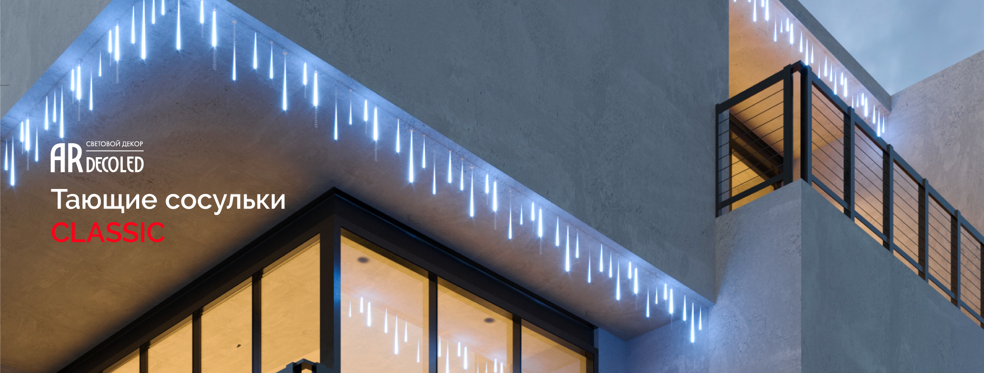 Широкий ассортимент В серии представлены гирлянды различной длины — 200, 500 и 1000 мм. Диаметр гирлянд — 12 или 23 мм. Вы можете установить «сосульки» классических оттенков белого, атмосферного синего или разноцветного свечения.