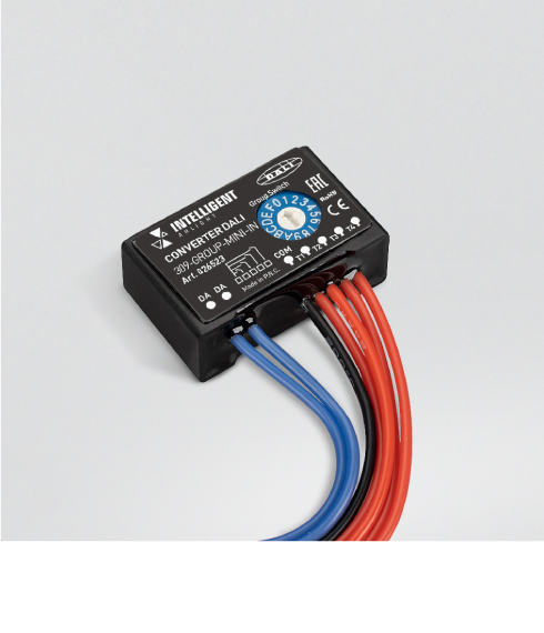 Разные протоколы В серии доступны устройства, преобразующие команды DALI в сигнал 0/1–10 В или DMX512, а также устройствами с сухими контактами на входе для подключения выключателей или датчиков.