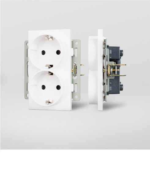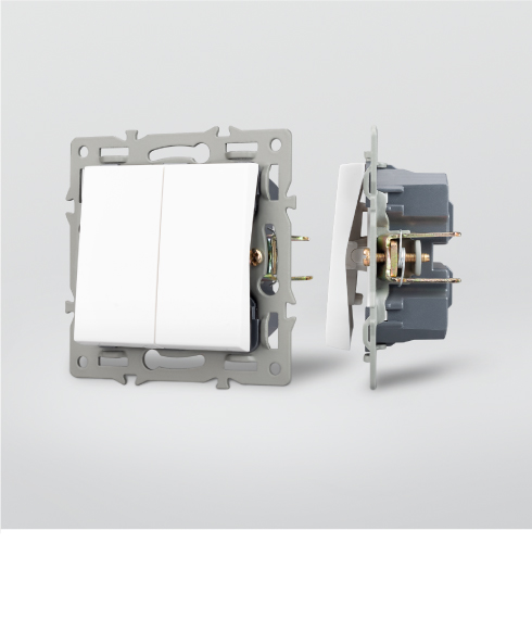 Разнообразие моделей Выключатели представлены в исполнении одно- и двухклавишных моделей непроходного, проходного и перекрестного типа. В серии розеток — модели с компьютерным разъемом RJ45 на один и два слота подключения, со стандартным разъемом на один пост и сдвоенные модели вертикального размещения на два поста. Также имеется влагозащищенная розетка (с крышкой), стандартная розетка с дополнительными USB-портами и индикацией подключения, и заглушка на один пост.