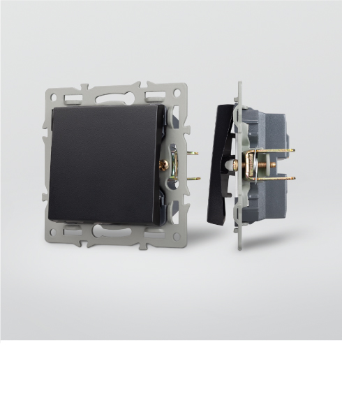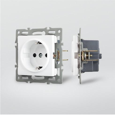 Крепление и фиксация Контактная часть выключателей и стандартных розеток выполнена из латуни, фиксация в которых происходит при помощи винтовых зажимов. А усиленные распорные лапки двойного захвата надежно фиксируют механизм в установочном подрозетнике.