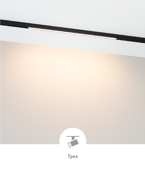 Безопасное напряжение питания 24 В позволяет перемещать светильники вдоль шинопровода и устанавливать их в пределах досягаемости.