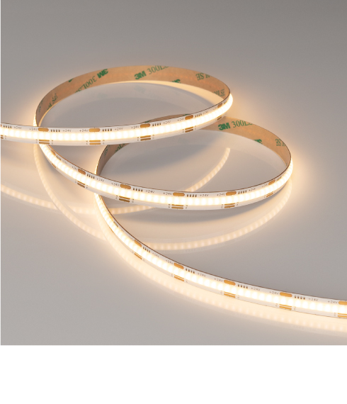 Бескорпусные COB ленты MIX с изменяемым тоном серия X576. Тип светодиодов CSP (X), 576 светодиодов на 1 метр. Позволяет получить оттенок белого цвета в широком диапазоне: от теплого до холодного. Предназначена для освещения помещений и декоративной подсветки интерьеров: торцевой подсветки, подсветки стеклянных полок, элементов мебели, ниш, декора.