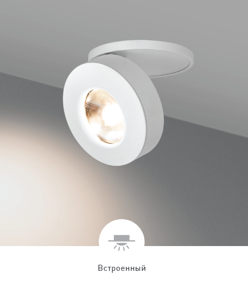 Белые и черные корпуса с откидным механизмом, который позволяет вращать корпус светильника на 355° и задавать угол наклона до 90°, что позволяет точно расставить световые акценты при освещении.