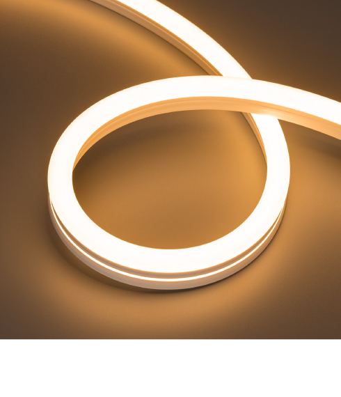 Экструдированный корпус обеспечивает высокую степень пылевлагозащиты (IP68), что позволяет устанавливать гибкий неон под водой.
