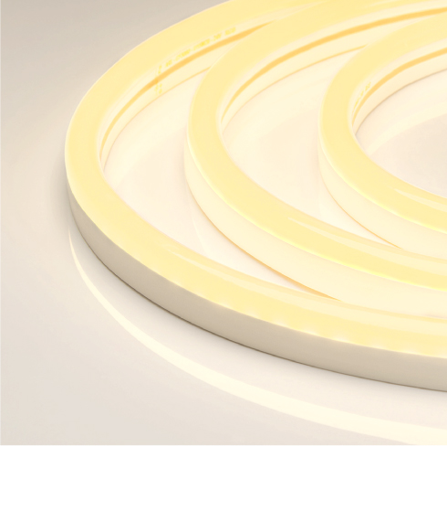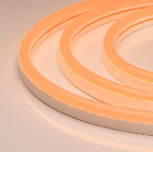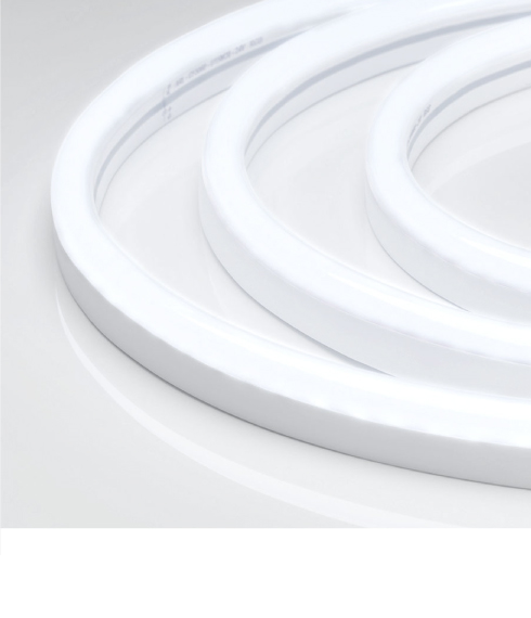 Гибкий неон NEON — отличное решение для декоративной подсветки ступеней, рекламных конструкций, а также для оформления кафе, баров, ванных и детских комнат. За счет прямоугольного сечения 26×15 мм гибкий неон легко встраивается в профиль и небольшие углубления в мебели. В серии представлены модели с напряжением питания 24 и 230 В.