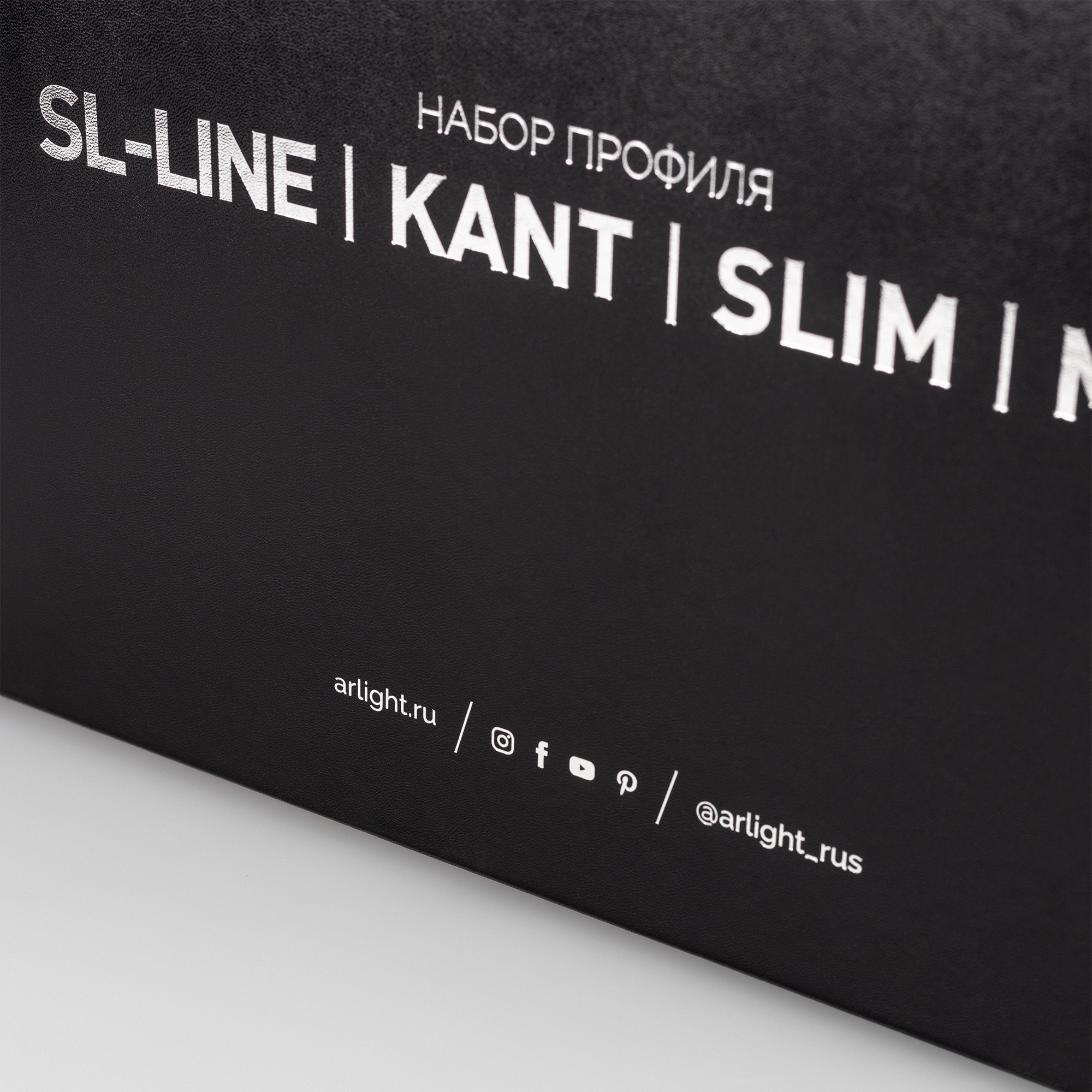 Демонстрационный набор образцов профиля SL-LINE-2011, SL-KANT-H16/H30, SL-SLIM/SLIM20, SL-MINI-8 в комплекте с экранами, светодиодной лентой напряжением 24В и заглушками. В комплекте идет блок питания для демонстрационного подключения.