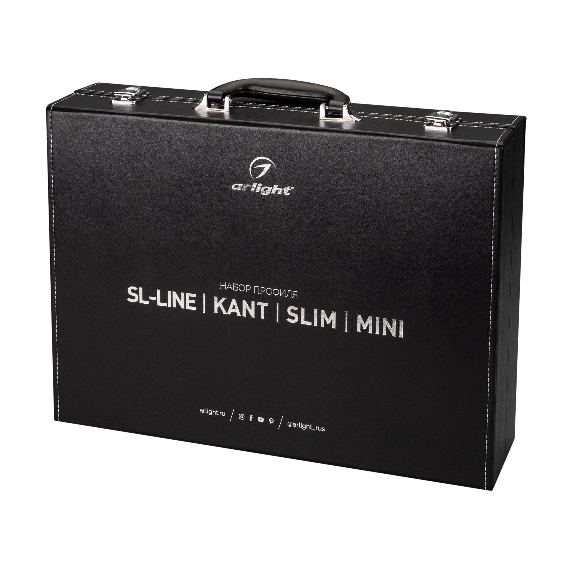 Демонстрационный набор обновлённых профилей серий SL-LINE-2011, SL-KANT-H16/H30, SL-SLIM/SLIM20, SL-MINI-8. Включает отрезки профиля с экраном и заглушками по 20см со светодиодной лентой 24В. Также в комплекте блок питания.