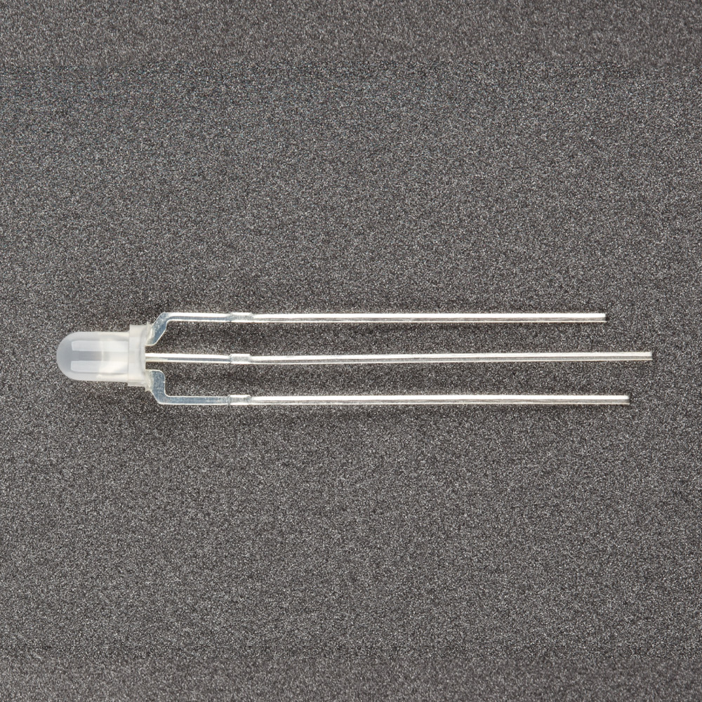 Поставка под заказ от 5000 шт. Выводной круглый светодиод, d=3 мм, матовая белая линза. Цвет свечения красный (625 нм), зеленый (565 нм). Угол излучения 40°. Сила света Iv=100-180 мкд (красный), Iv=70-120 мкд (зеленый) при If=20 мА. VF=2.0-2.5 В. Три вывода, общий катод.