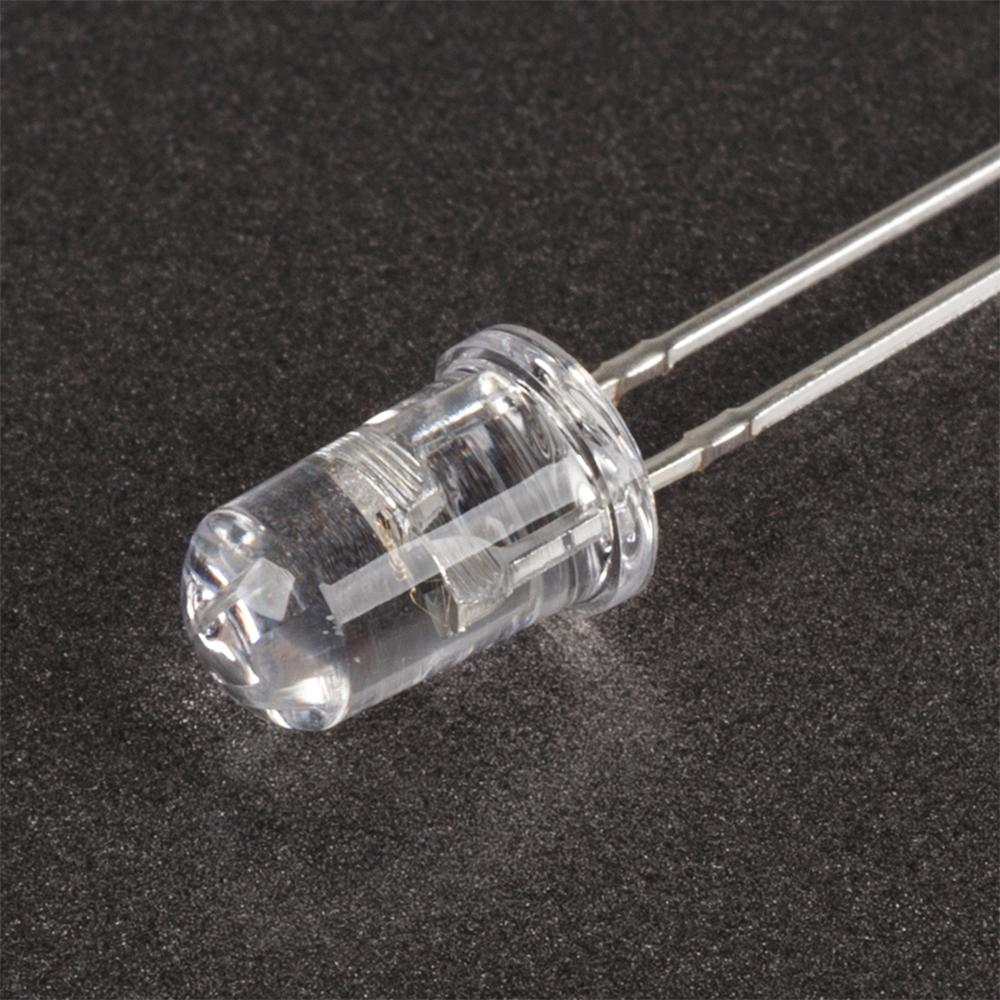 Выводные светодиоды различного диаметра (от 3 до 10 мм) и цвета свечения (в том числе двухцветные и RGB) изготовлены с применением различных материалов первичной оптики. Кристалл помещен в корпус со специальной линзой (прозрачной или окрашенной), которая формирует нужный световой пучок (узкий от 10 до 60° или широкий 120-140°). Данный тип светодиодов применяется в модулях индикации электронных приборов, устройств типа «бегущая строка» и «табло», в специальных устройствах (дорожные знаки и светофоры), световых украшениях или игрушках с подсветкой.