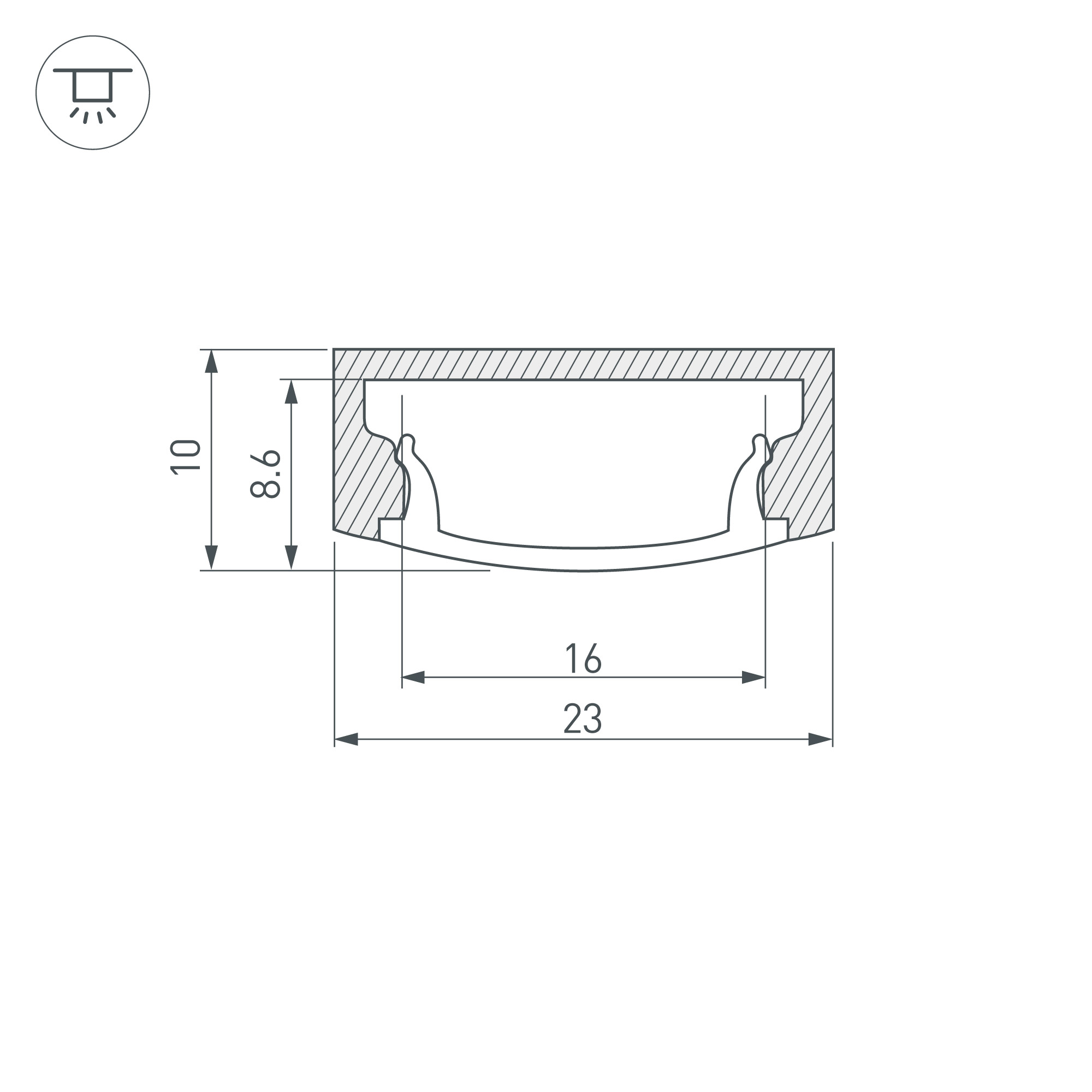 Накладной профиль из анодированного алюминия в комплекте с матовым рассеивателем из поликарбоната со светопропусканием 40% идеально подходит для контурной подсветки.