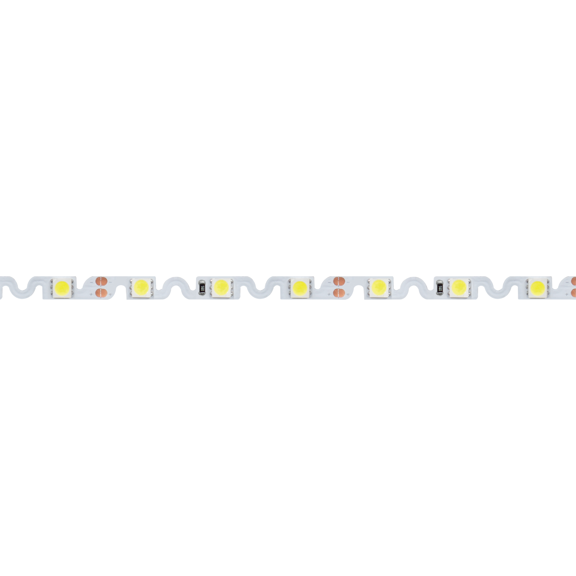 Светодиодная гибкая лента шириной 6.1 мм. Легко изгибается на плоскости за счет фигурной платы в форме волны. Светодиоды SMD 5060 (48 шт/м) теплого белого цвета свечения (2600–2800 К). Мощность 11.5 Вт/м, напряжение питания 12 В. Индекс цветопередачи CRI>85. Минимальный отрезок 62.5 мм (3 светодиода). Подходит для установки в криволинейные пазы. Применяется для подсветки изогнутых поверхностей, букв, витрин и ниш.