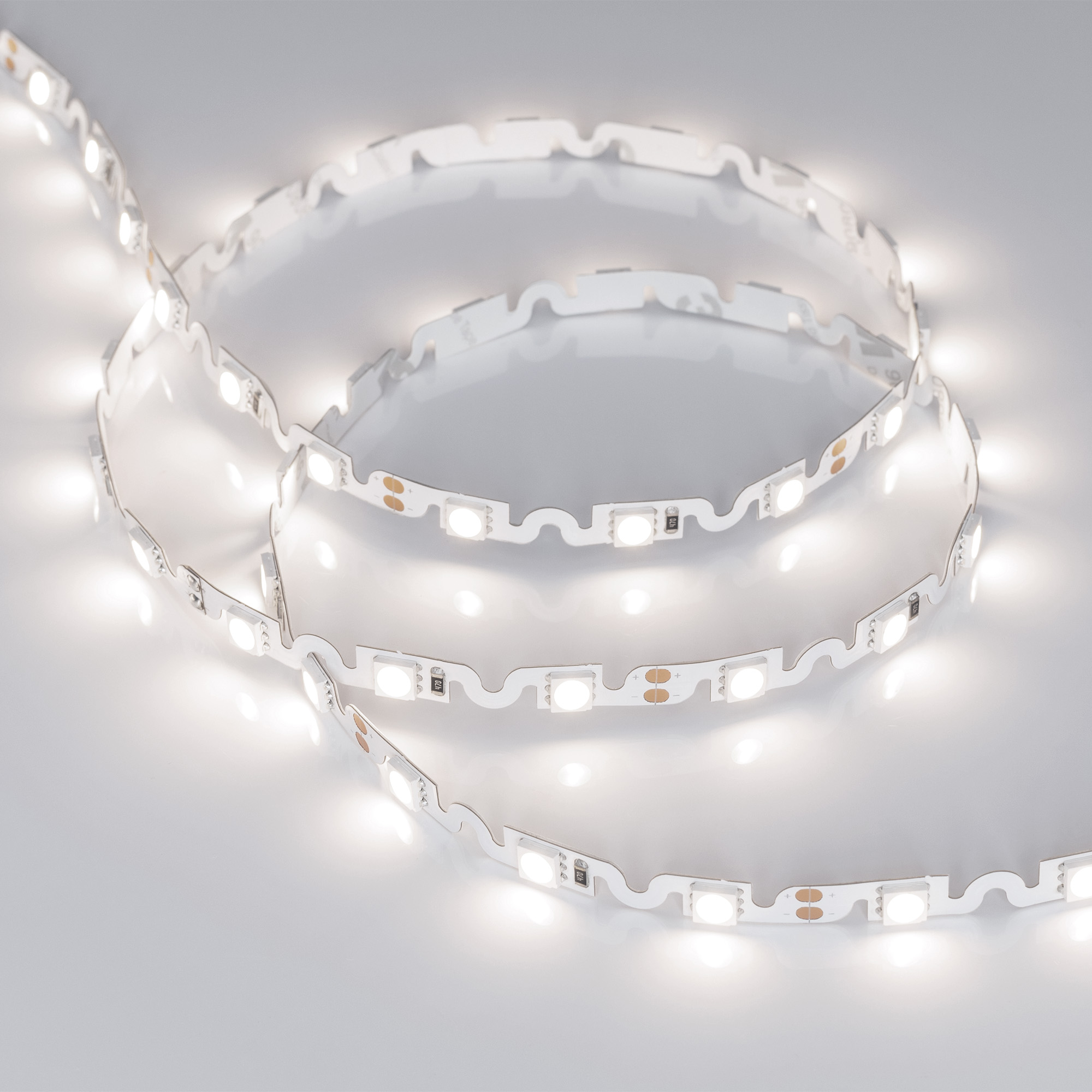 Светодиодная гибкая лента шириной 6.1 мм. Легко изгибается на плоскости за счет фигурной платы в форме волны. Светодиоды SMD 5060 (48 шт/м) дневного белого цвета свечения (3800–4200 К). Мощность 11.5 Вт/м, напряжение питания 12 В. Индекс цветопередачи CRI>85. Минимальный отрезок 62.5 мм (3 светодиода). Подходит для установки в криволинейные пазы. Применяется для подсветки изогнутых поверхностей, букв, витрин и ниш.