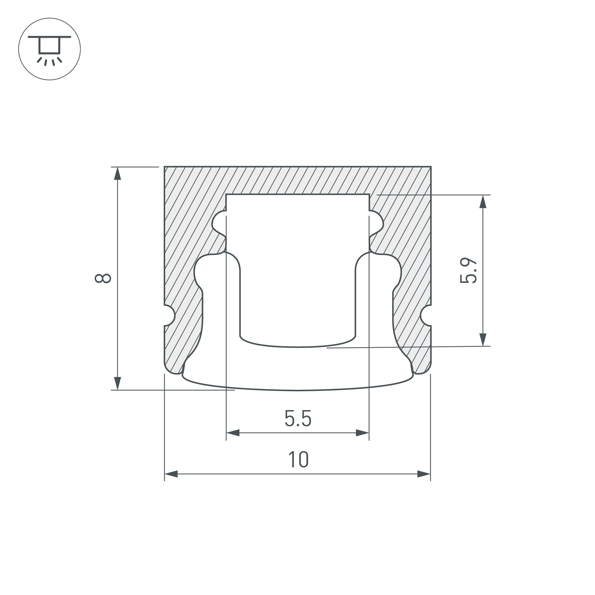 Накладной профиль из анодированного алюминия для подсветки мебели, пазов, ниш и других элементов интерьера. Габаритные размеры профиля составляют 2000 мм в длину, 10 мм в ширину и 8 мм в высоту. Площадка для установки светодиодных лент позволяет использовать ленту шириной до 5,5 мм и мощностью до 9,6 Вт/м. Это обеспечивает гибкость в выборе светодиодных лент и создает потрясающие световые решения.