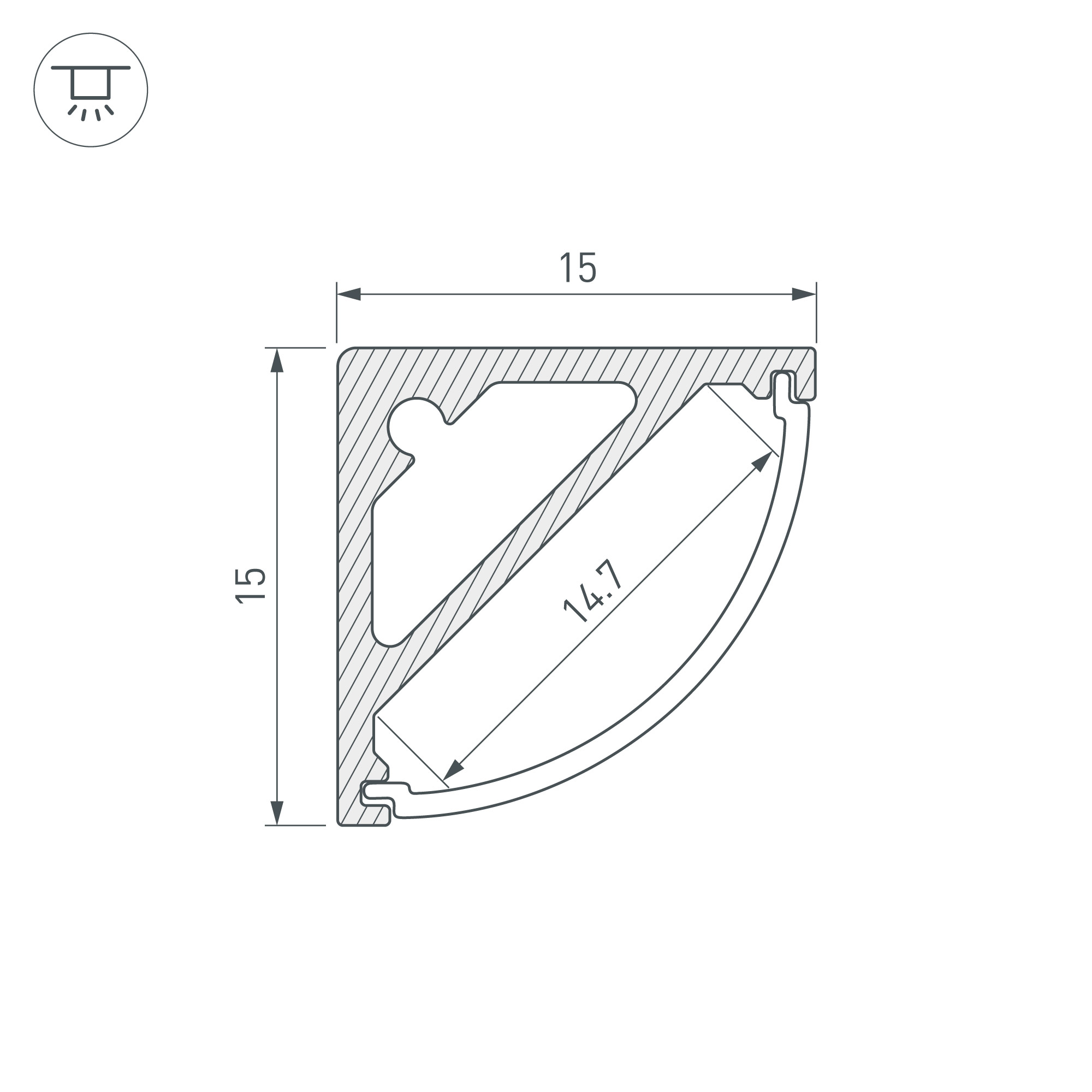 Алюминиевый анодированный угловой профиль для светодиодных лент и линеек. Габаритные размеры (L×W×H): 2000x15x15 мм. Ширина площадки для ленты 14,7 мм. Экраны, заглушки и другие аксессуары приобретаются отдельно. Цена за 1 метр.