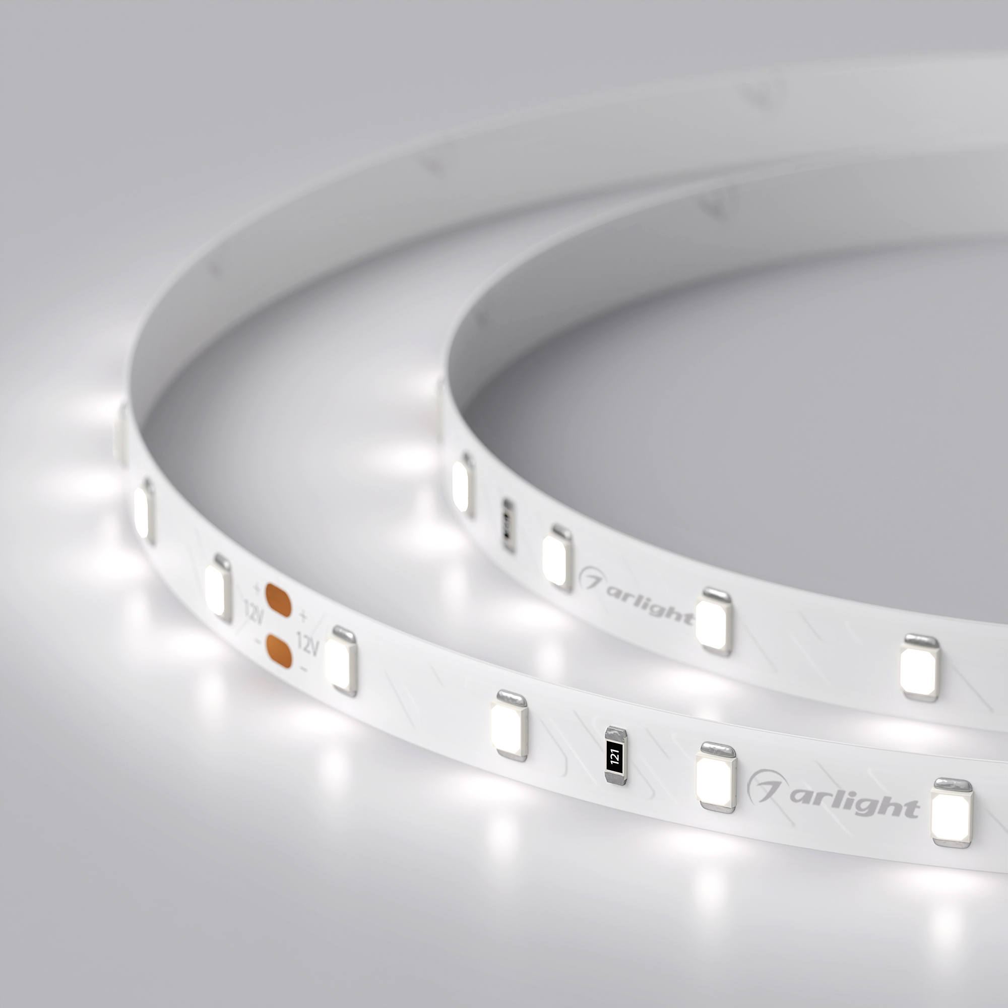 Универсальная светодиодная лента RT серии A60 шириной 8 мм, мощностью 7.2 Вт/м. Напряжение питания 24 В. Светодиоды SMD 2835, 60 шт/м, белого цвета свечения (6000K). Индекс цветопередачи CRI>85. Минимальный отрезок 100 мм (6 светодиодов). Универсальное применение для организации декоративной подсветки любых жилых и коммерческих помещений, подсветки интерьеров, потолочных ниш, лестниц, ступеней, полок, натяжных потолков, витражей, рекламных конструкций.