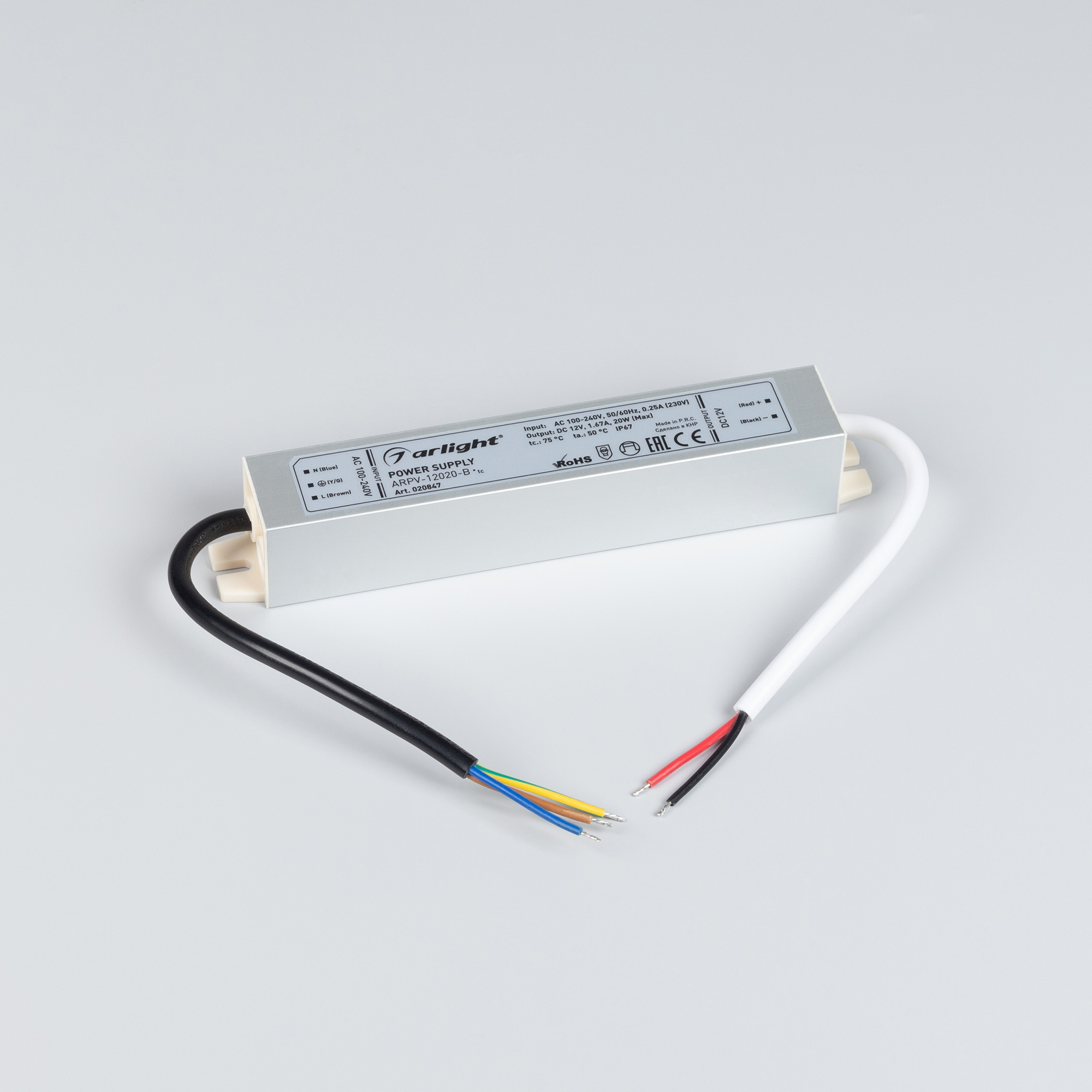 Источник напряжения с гальванической развязкой для светодиодных изделий. Входное напряжение 100-240 VAC. Выходные параметры: 12 В, 1,67 А, 20 Вт. Встроенный PFC >0,5. Герметичный алюминиевый корпус IP 67. Рабочая температура -25…+50C⁰. Габаритные размеры длина 148 мм, ширина 25 мм, высота 27 мм. Гарантийный срок 3 года.