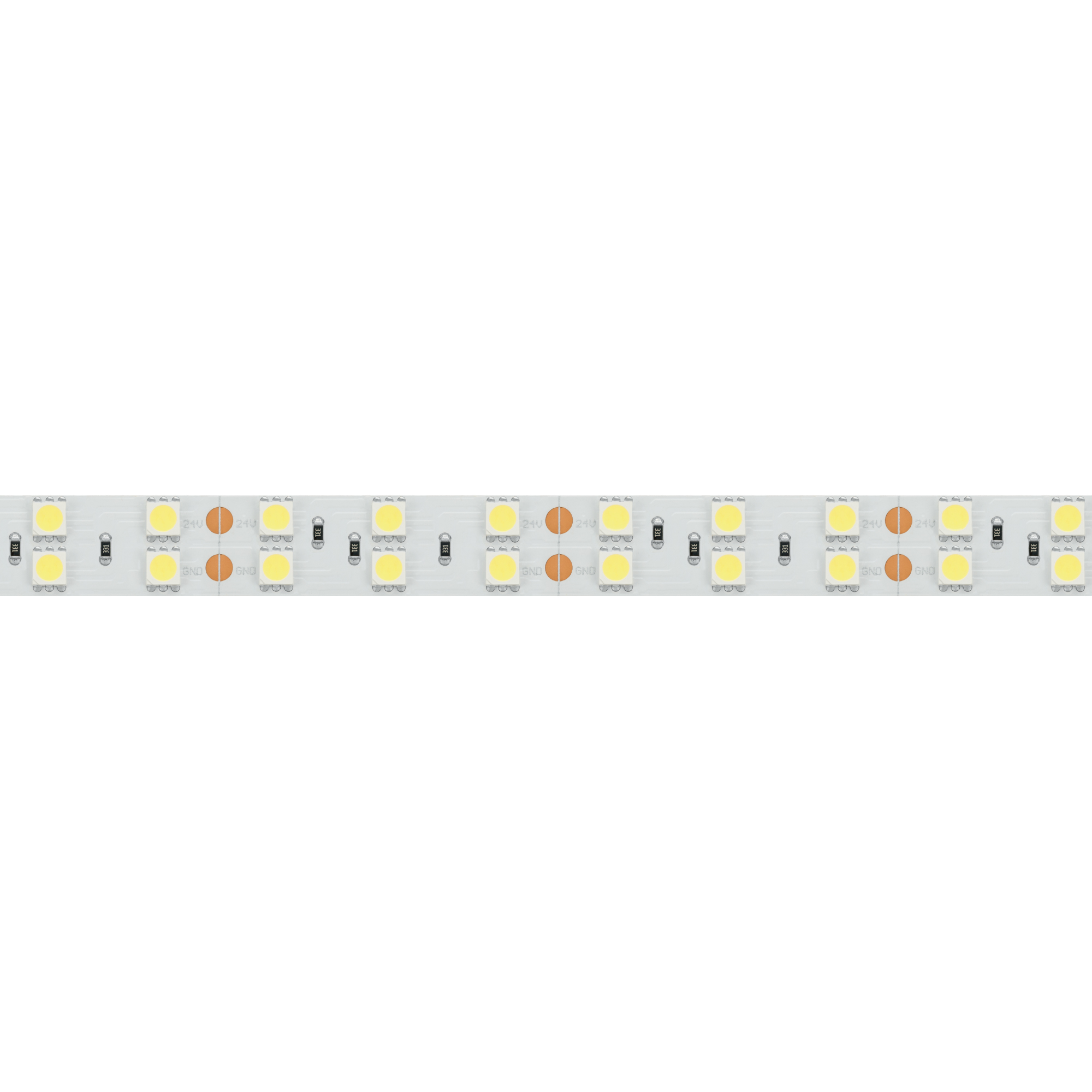 CRI98, гибкая лента LUX, 2 ряда светодиодов smd 5060, 120шт/м (600шт на 5м), белая плата 15мм, скотч 3М. Цвет ДНЕВНОЙ 3800-4200K. Питание 24V, мощность 28.8 Вт/м (144 Вт на 5м), угол 120°, очень высокая цветопередача CRI 95..98. Размеры 5000х15х2.2мм. Мин.отрезок 50мм, 6 светодиодов. Цена за 1м.