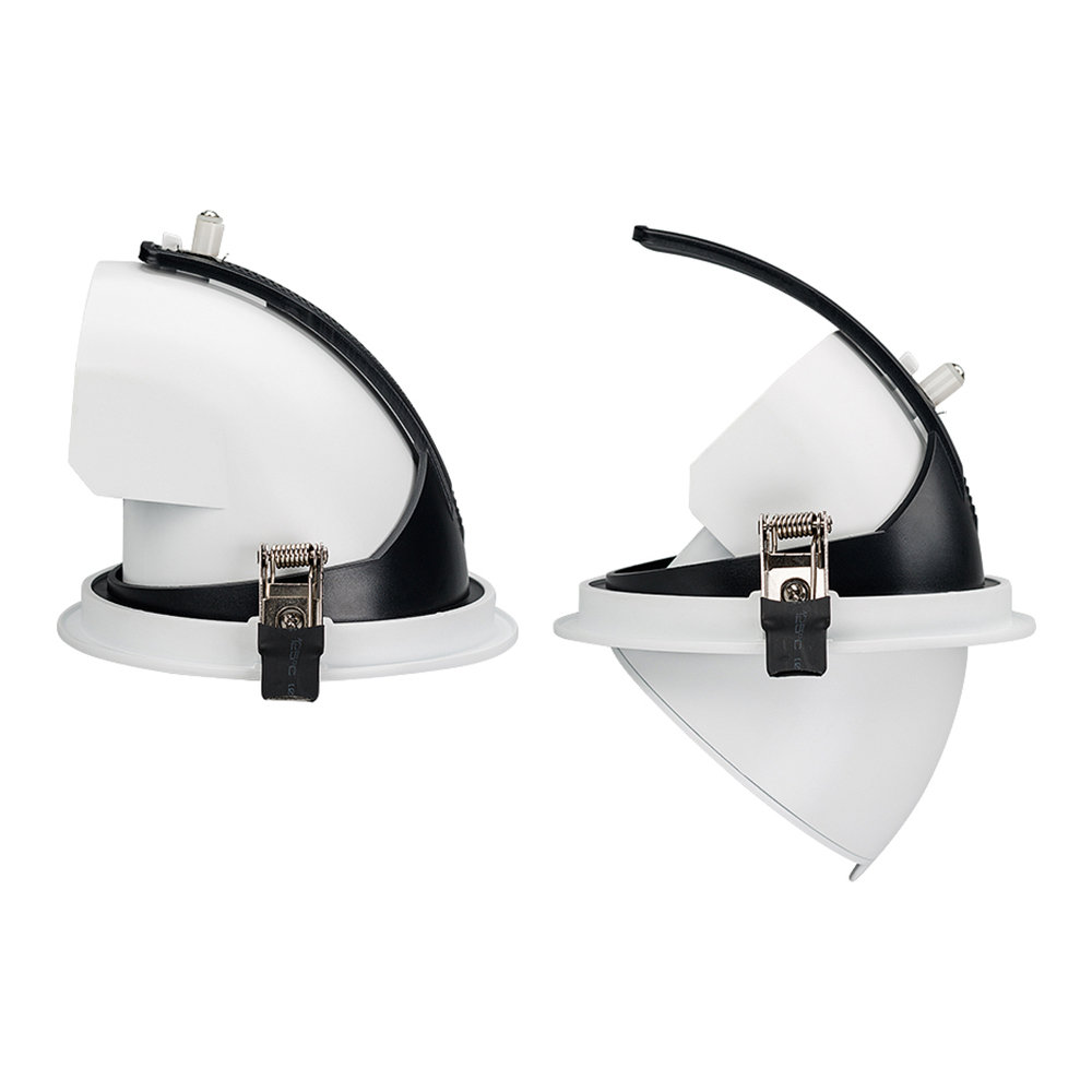 Встраиваемый поворотный круглый светильник серии EXPLORER с высоким индексом цветопередачи CRI>90 обеспечивает равномерное освещение без мерцания с отличным восприятием цветов. Корпус светильника поворачивается вокруг своей оси на 350 градусов и отклоняется на 45 градусов относительно вертикальной оси, что позволяет изменять направление светового луча. Особая конфигурация корпуса позволяет эффективно отводить тепло и продлевает срок службы светодиодов. Светильник с узким углом излучения и высокой световой эффективностью 80-90 лм/ВТ создает качественный направленный световой поток. Легко устанавливается с помощью пружин в монтажное отверстие потолка. В комплекте поставляется драйвер, что позволяет безопасно и быстро подключать светильник напрямую к сети переменного тока 230 В. Возможно диммирование при замене штатного драйвера. Предназначен для освещения в жилых, коммерческих и общественных помещениях, где отсутствует контакт с водой.