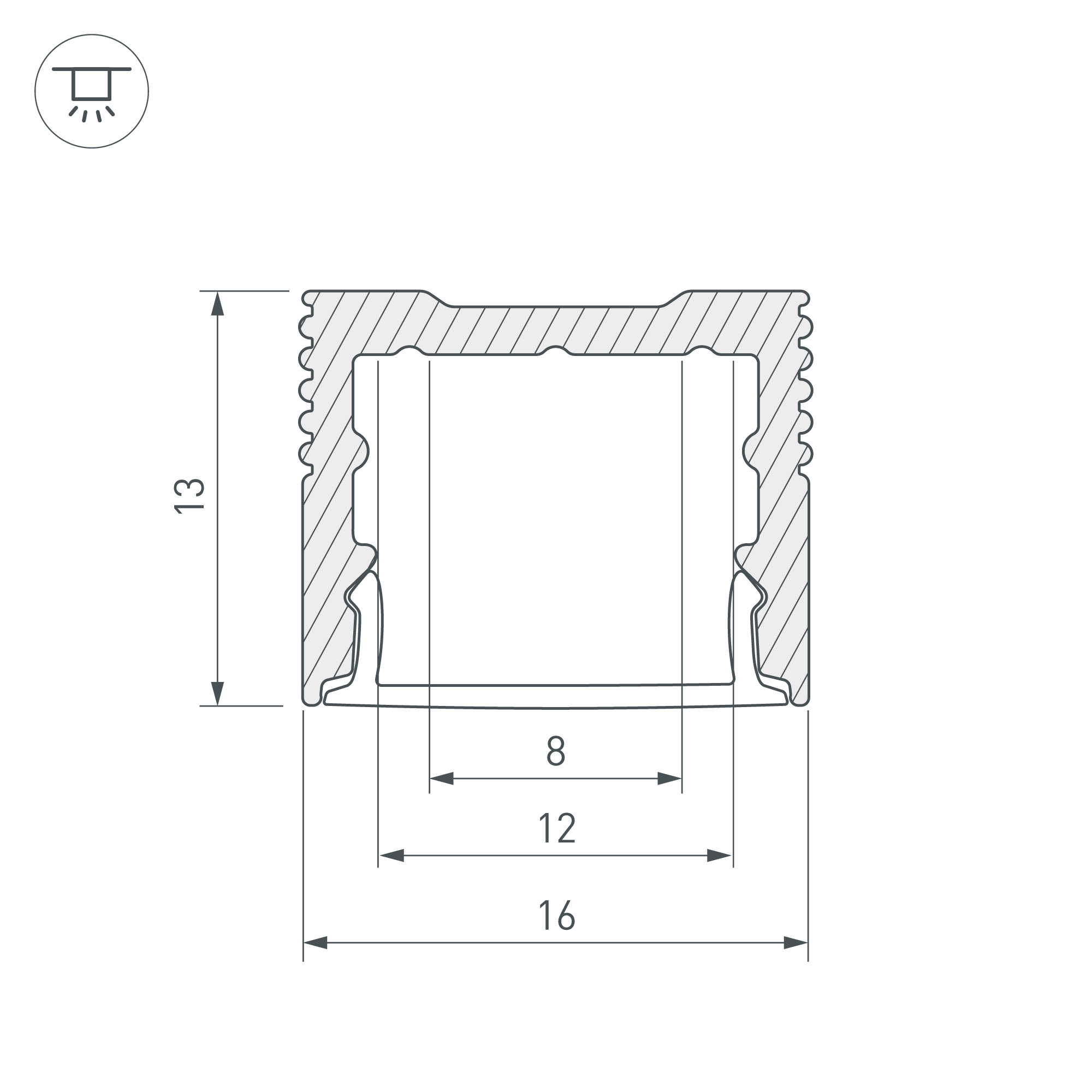 Алюминиевый анодированный профиль для светодиодных лент и линеек. Габаритные размеры (L×W×H): 2000x16x13 мм. Ширина площадки для ленты 12 мм. Экраны, заглушки и другие аксессуары приобретаются отдельно. Цена за 1 метр.