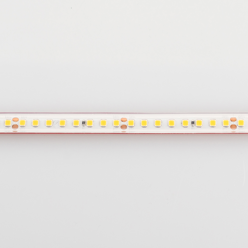 Герметичная светодиодная лента шириной 10 мм в силиконовой трубке (экструзия, без сдвига ЦТ) с высокой степенью пылевлагозащиты IP67. Светодиоды SMD 2835 (160 шт/м) теплого белого цвета свечения (2600 - 2800 К), индекс цветопередачи CRI>85. Мощность 12 Вт/м, напряжение питания 24 В. Минимальный отрезок 50 мм (8 светодиодов). Освещение интерьеров и создание декоративной подсветки. Оформление наружной рекламы и витрин. Использование в помещениях и на улице.