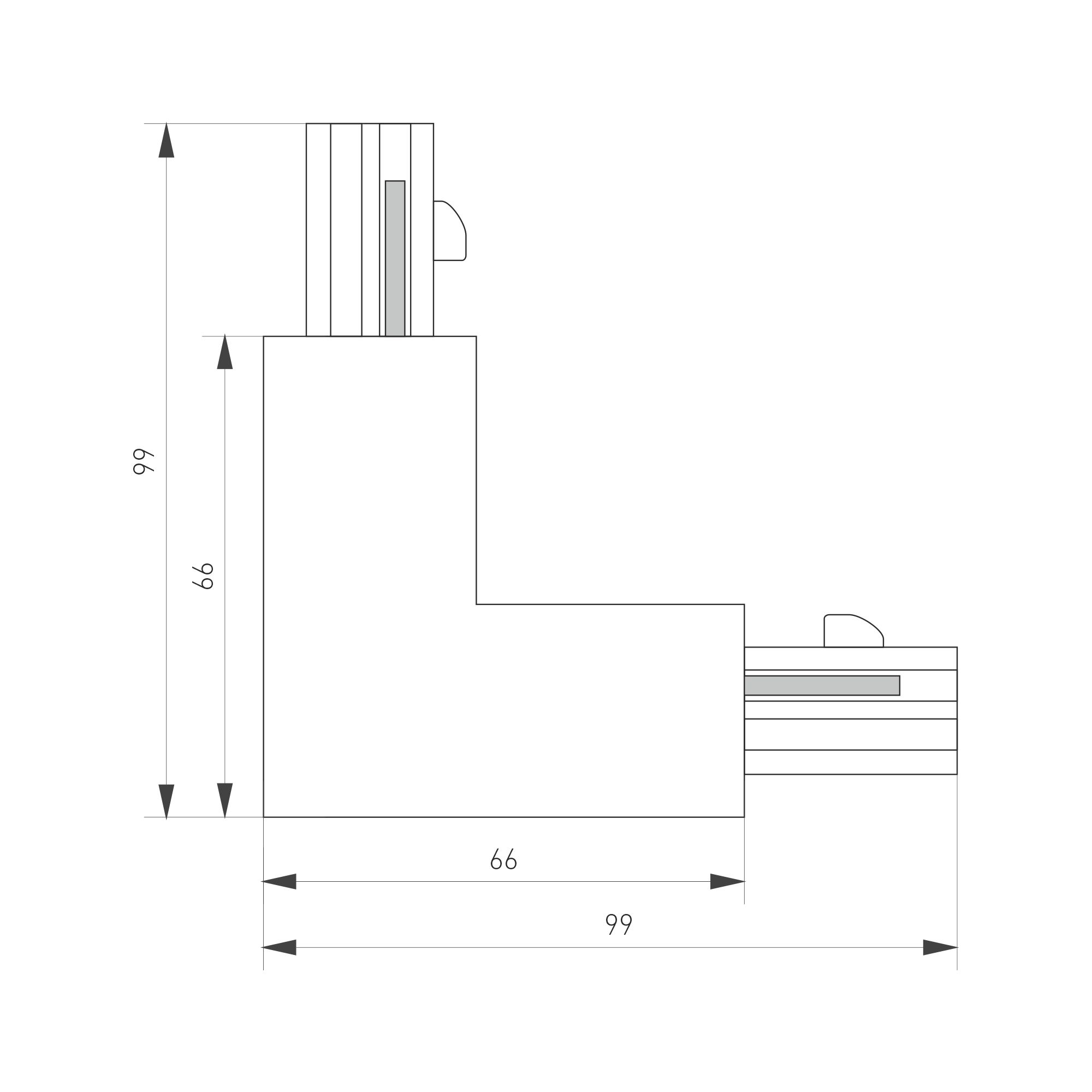 Угловой коннектор 90 градусов, питание по внутренней стороне. Цвет белый. 99х99х33 мм с контактами, 66х66х33 мм без контактов. При использовании с треками и аксессуарами другой серии возможно отличие по цвету.