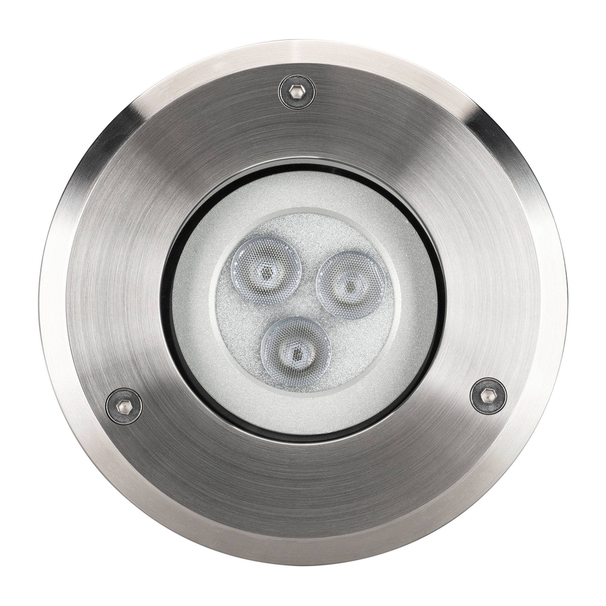 Встраиваемый светодиодный светильник GROUND-TURN мощностью 9 Вт мульти цветного свечения RGB, со световым потоком 310 лм предназначен для ландшафтного освещения парковых и садовых дорожек, придомовых территорий, а также декоративной подсветки фасадов, лестниц. Узкий угол излучения с изменяемым углом наклона светового потока позволяет создать четкий акцент на подсвечиваемом объекте и легко отрегулировать нужное направление луча в ручную. Ударопрочный круглый корпус из нержавеющей стали с экраном из закаленного стекла толщиной 8мм надежно защищают оптический блок от внешних воздействий. Степень пылевлагозащиты корпуса IP67 рассчитана на длительное использование на открытом воздухе, а так же обеспечивает надежную работу в неблагоприятных условиях. Светильник может работать как в статичном режиме, так и в режиме динамической смены цвета. Для управления и подключения используются совместимые контроллеры ШИМ или DMX512 и блок питания постоянного напряжения 24В (приобретаются отдельно).