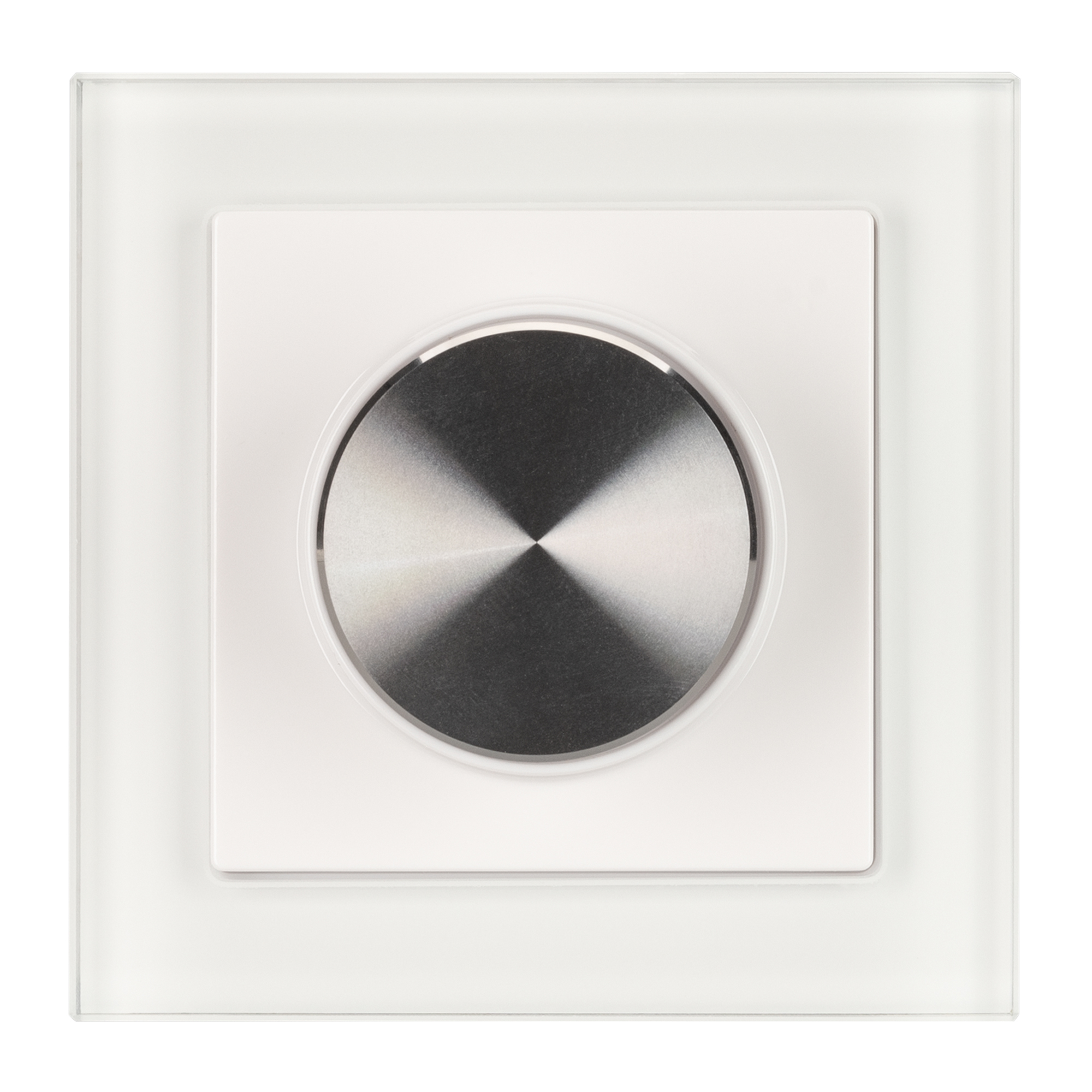 Встраиваемая стеклянная панель белого цвета с роторным вращателем (потенциометром), предназначенная для управления светодиодным или любым другим осветительным оборудованием, работающим в протоколе DALI. С помощью панели осуществляется регулировка яркости и включение/выключение света. Панель совместима с любыми исполнительными устройствами стандарта DALI. Установка номера группы или режима Broadcast выполняется переключателем на задней стороне панели. Питание устройства осуществляется от шины DALI, тип устройства DALI DT6. Установка адреса управления выполняется переключателями на корпусе. Габариты устройства составляют 80х80х40 мм, подсветка регулятора во включенном состоянии, установка в стандартный подрозетник. Панель совместима с декоративными рамками ведущих мировых производителей (GIRA, JUNG, BERKER, MERTEN). Стандартная рамка входит в комплект поставки.