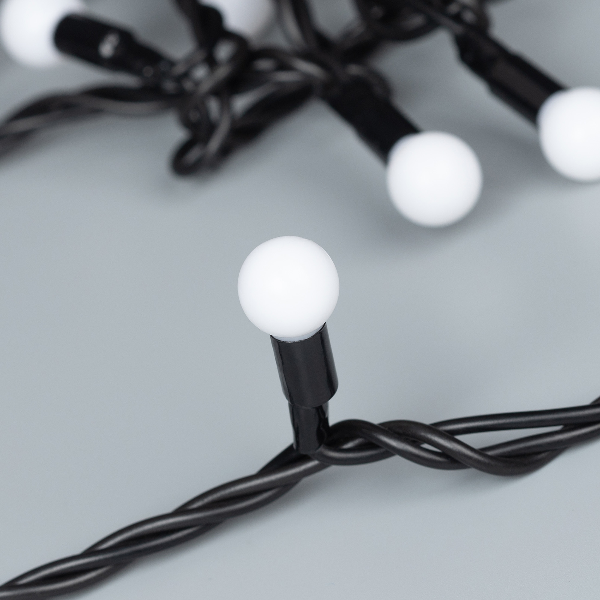 Универсальная светодиодная гирлянда "ШАРИКИ" серии Classic, предназначенная для декорирования и создания праздничного настроения как внутри помещений, так и снаружи (степень пылевлагозащиты IP65 позволяет размещать гирлянду на улице под навесом). Имея длину 5000 мм, она может использоваться для оформления небольших и средних площадей. Универсальные соединительные разъемы позволяют наращивать длину до 200 м без использования дополнительных аксессуаров. Выпуклая молочно-белая линза размером 13 мм и эффект непрерывного свечения обеспечивают мягкое, равномерное освещение, выделяя украшаемые объекты. RGBY свет помогает создать необходимую атмосферу для декоративного объекта. Провод изготовлен из ПВХ и окрашен в чёрный цвет. Аксессуары для подключения приобретаются отдельно.