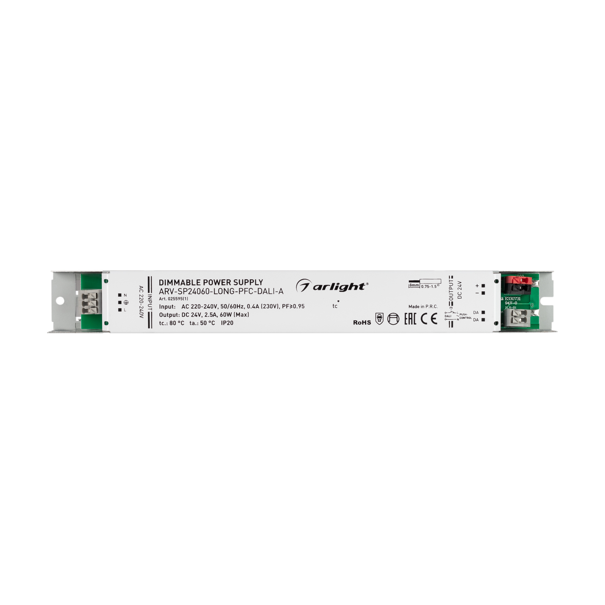 Блок питания ARV-SP24060-LONG-PFC-DALI-A (24V, 2.5A, 60W) (Arlight, IP20 Металл, 5 лет)