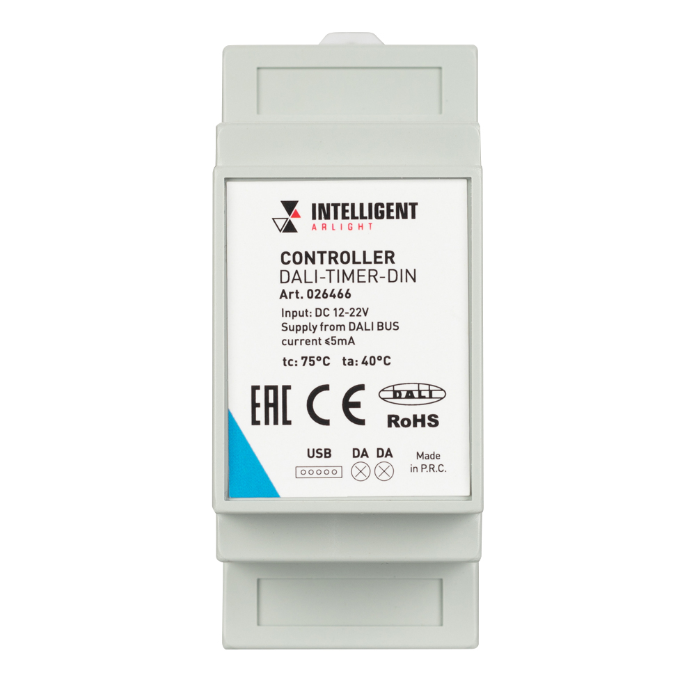 Логический автономный контроллер-таймер DALI для управления по времени сценами, устройствами, группами. 16 временнЫх точек, в каждой точке до 8 объектов управления. 24/7 часы реального времени с резервной батареей. Питание от шины DALI . Настройка с компьютера через USB. Монтаж на DIN-рейку. Минимальная временная задержка между точками перехода - 1 минута. Идеален для создания суточного таймера, управления MIX источниками света для реализации HCL (циркадного освещения).