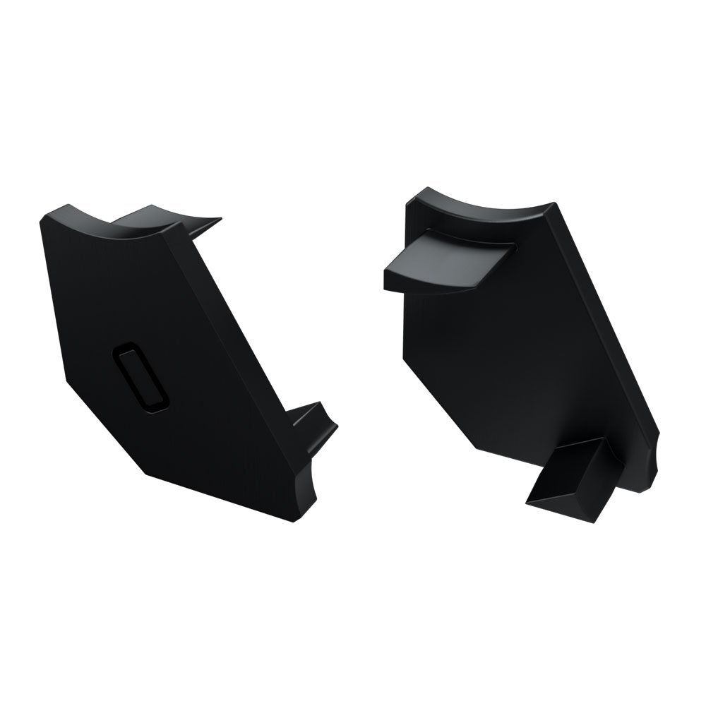Черная правая глухая заглушка для профиля ALM-V60 придает законченный вид светильнику, а также защищает светодиодную ленту от внешних факторов (грязи, пыли и прочего). Имеется разметка под отверстие.
