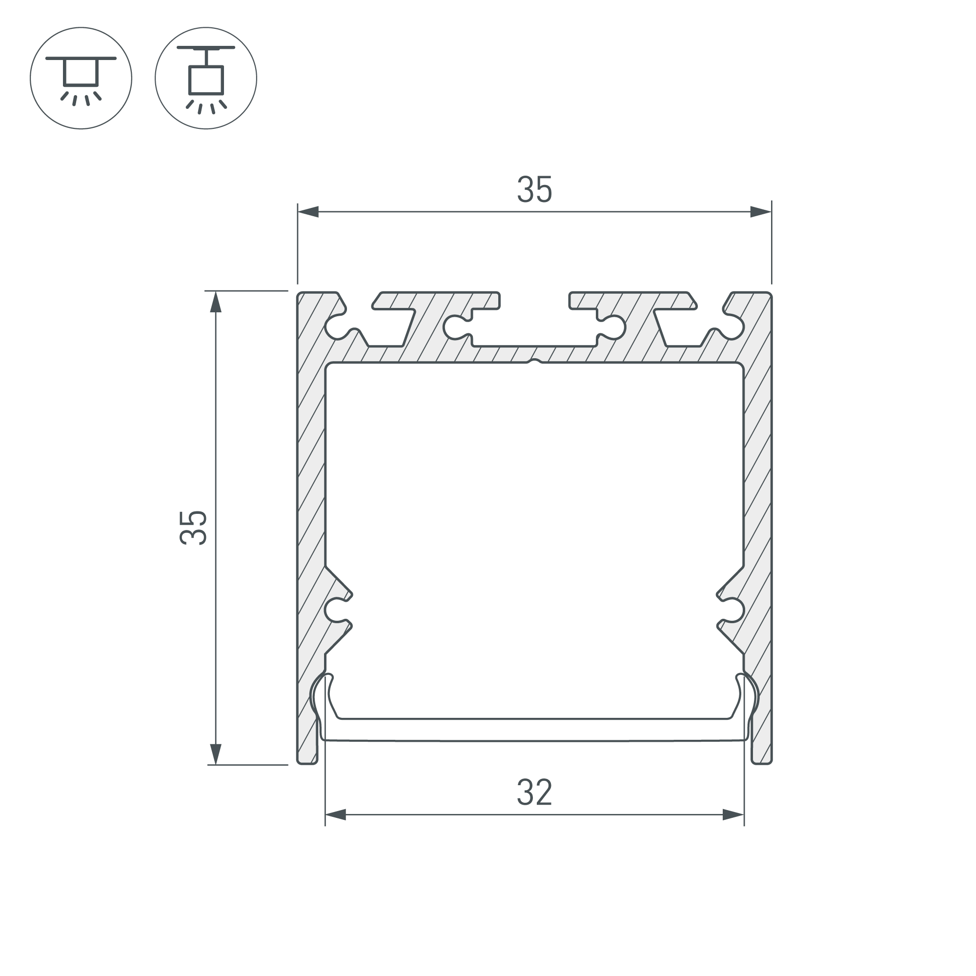Комплект с экраном. Алюминиевый профиль для светодиодных лент и линеек. Цвет - черный RAL9005 (порошковая окраска). Габаритные размеры (L×W×H): 2500x35x35 мм. Ширина площадки для ленты 31 мм. Аксессуары приобретаются отдельно. Цена за комплект: профиль - 2,5 м, экран - 2,5 м, глухая заглушка - 4 шт., шурупы - 16 шт.