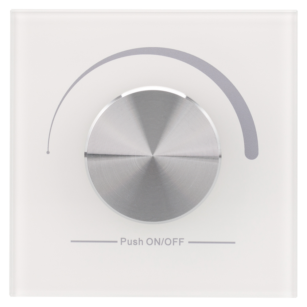 Встраиваемая стеклянная панель белого цвета с роторным вращателем (потенциометром), предназначенная для управления светодиодным или любым другим осветительным оборудованием, работающим в протоколе DALI. С помощью панели осуществляется регулировка яркости и включение/выключение света. Панель совместима с любыми исполнительными устройствами стандарта DALI. Питание устройства осуществляется от шины DALI, управление 1 адресом DALI или всей шиной (Broadcast). Установка адреса управления выполняется переключателями на корпусе. Габариты устройства составляют 86х86х45 мм, установка в стандартный подрозетник.