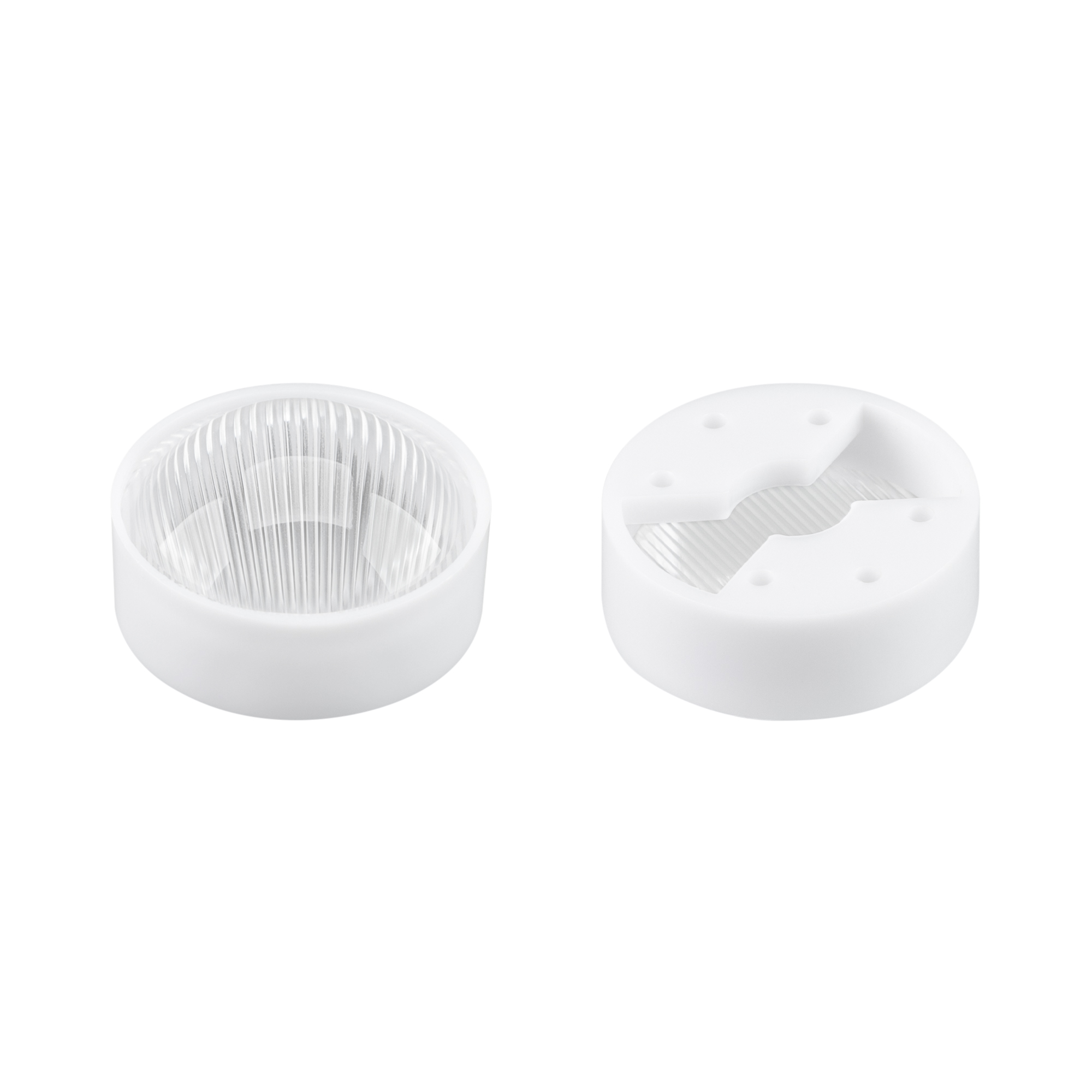 Одиночная линза со съемным холдером белого цвета для мощного светодиода Emitter. Угол обзора: вертикальный 65°, горизонтальный 120°, прозрачная микропризма. Материал PMMA. Диаметр 24.6 мм, высота 13.93 мм. Великолепно подходит для RGB-mix смешивания.