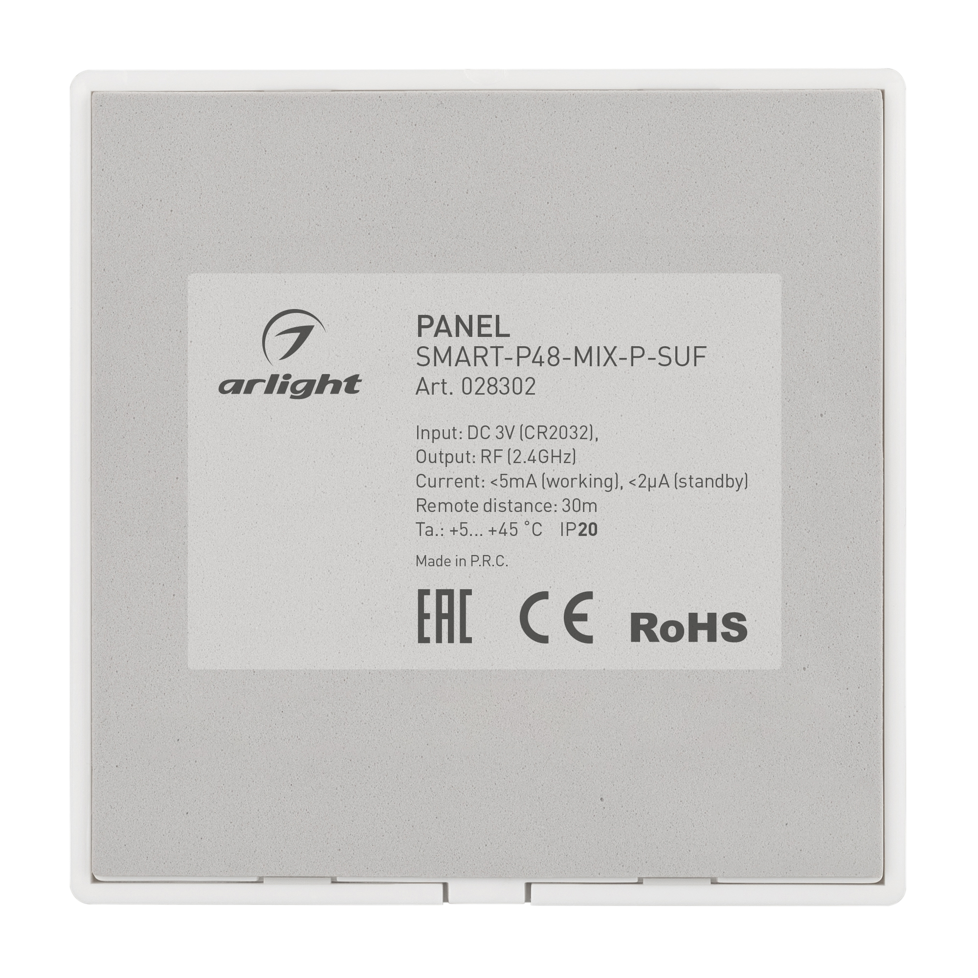 Панель SMART-P48-MIX-P-SUF (3V, 1 зона, Knob, 2.4G) (Arlight, Пластик)