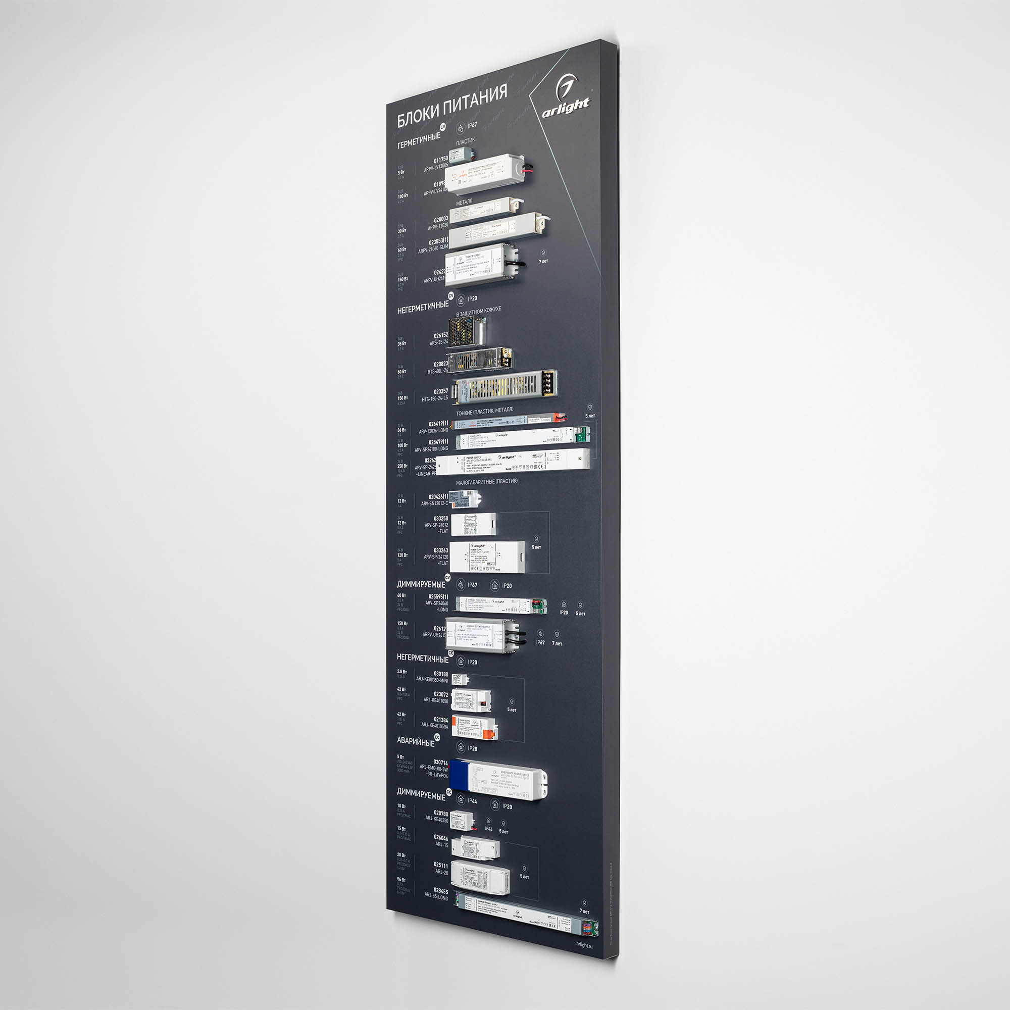 Стенд Блоки питания, 22 модели. Материал - композит 3 мм, пленка, печать.
