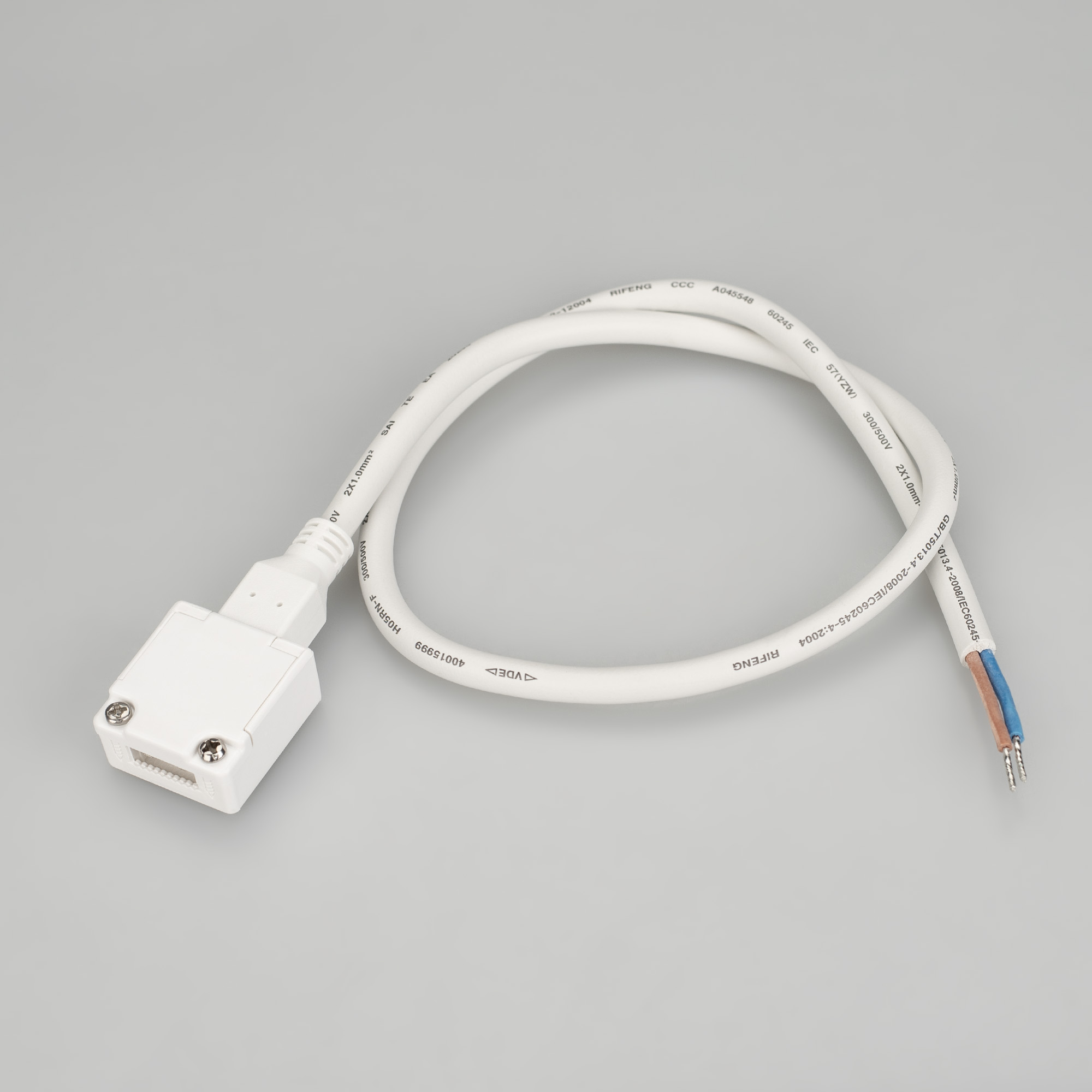 Герметичный коннектор для подключения питания светодиодных лент ARL-50000PV и ARL-10000PV , тип WP2, к сети 230V. Корпус IP65. Провод 600мм, 2х1мм². Максимальный допустимый ток 3А. Цена за 1шт.