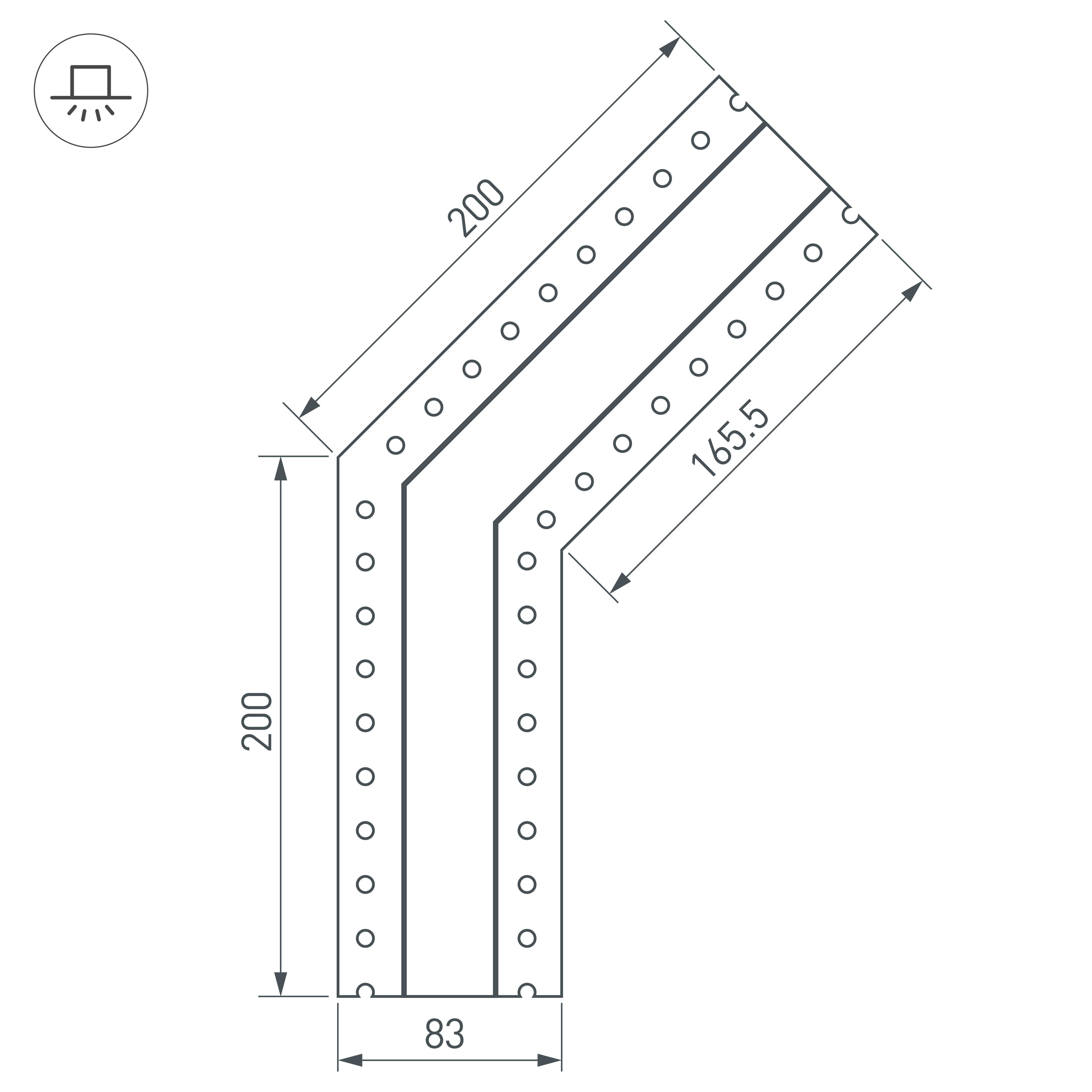 Угол в сборе со скрытым фланцем под строительную отделку для соединения двух профилей SL-LINIA32-FANTOM под углом 135° в одной плоскости в комплекте с матовым экраном и соединителями. Экран образует линию на плоскости. Применятся при изготовлении светильников сложной геометрии.
