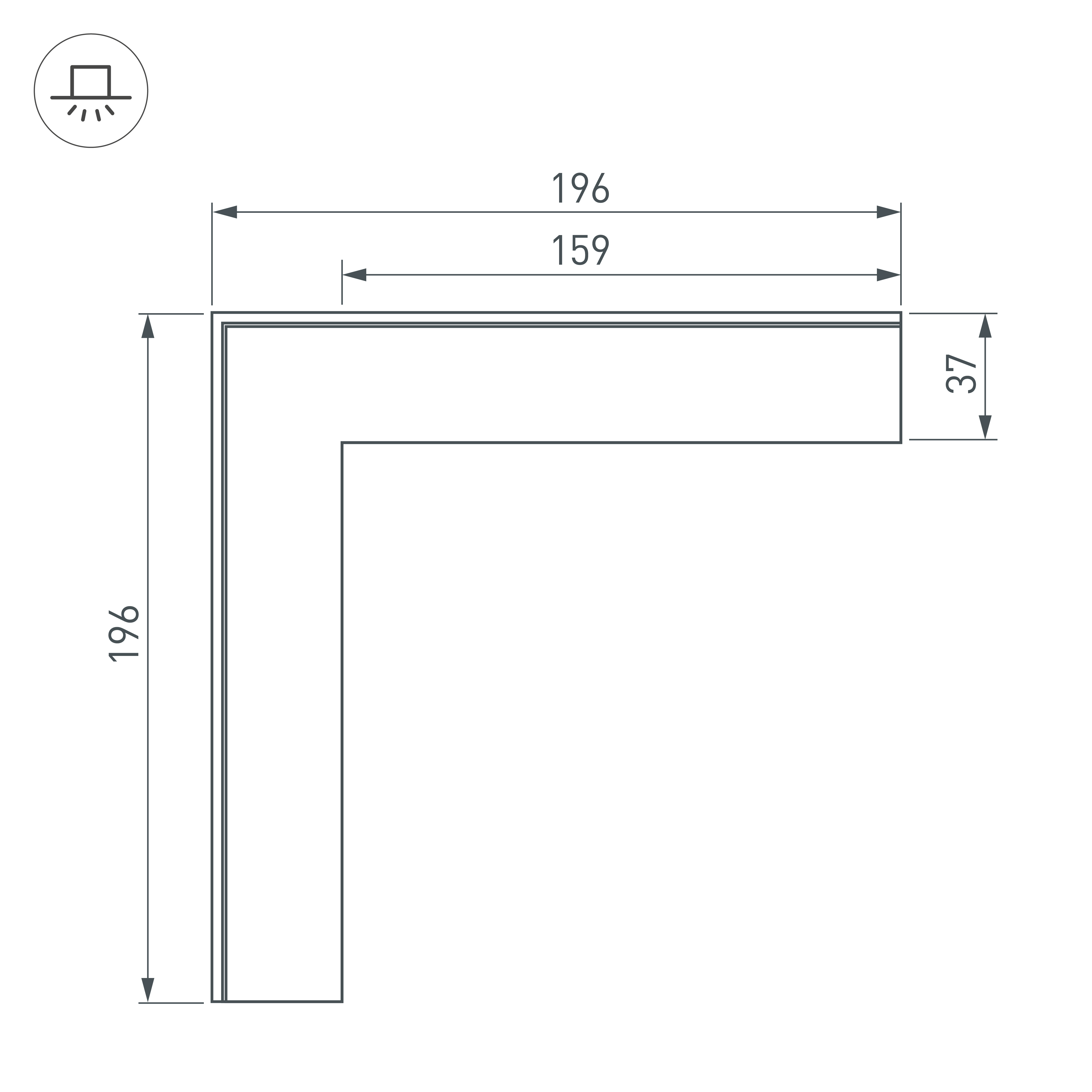 Внешний прямой угол в сборе со скрытым фланцем под строительную отделку для соединения двух профилей SL-LINIA32-FANTOM под прямым углом 90° в разных плоскостях в комплекте с матовым экраном и соединителями. Экран образует линию по внешней стороне угла. Применятся при изготовлении светильников сложной геометрии.