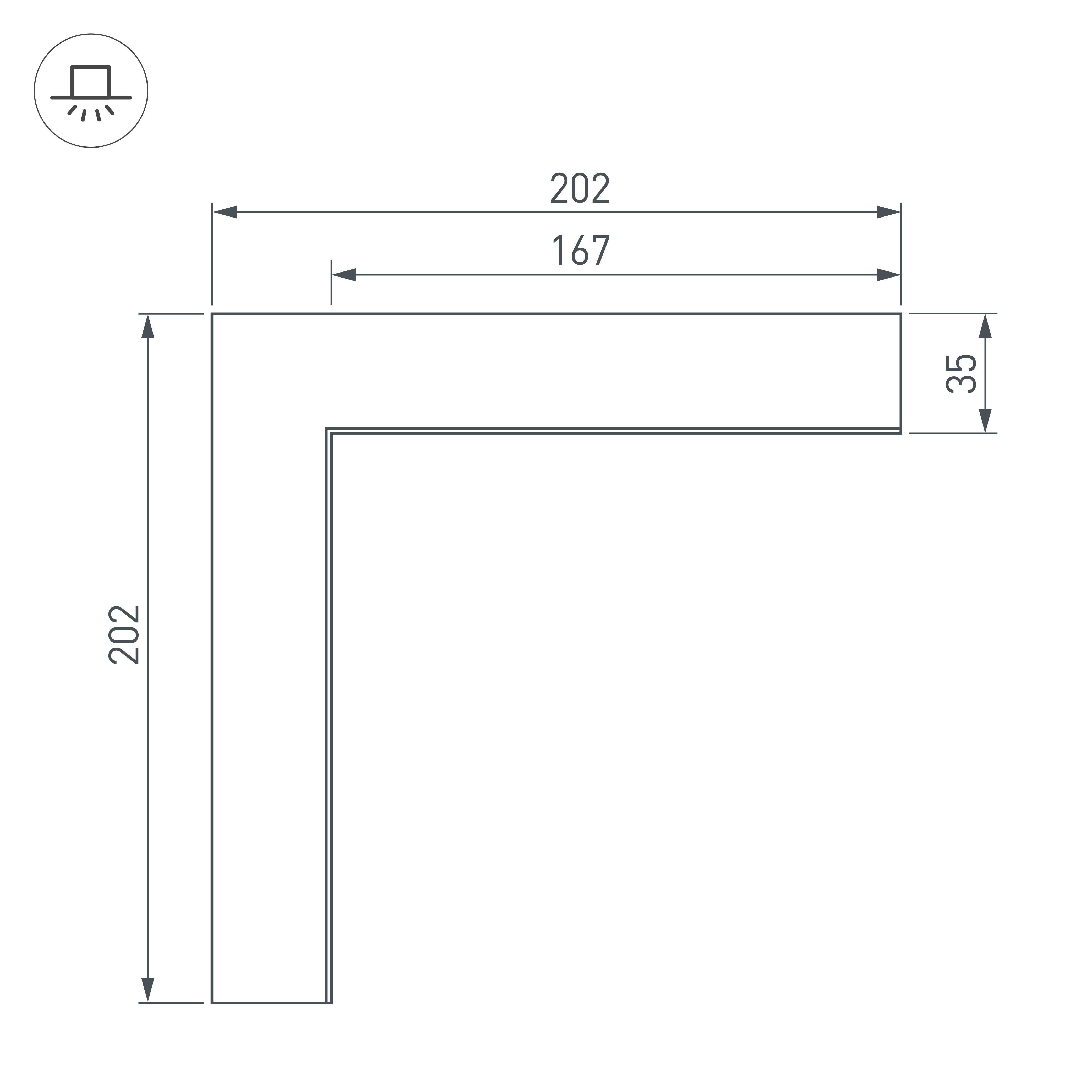 Внутренний прямой угол в сборе с накладным фланцем для соединения двух профилей SL-LINIA65-F под прямым углом 90° в разных плоскостях в комплекте с матовым экраном и соединителями. Экран образует линию внутри угла. Применятся при изготовлении светильников сложной геометрии.