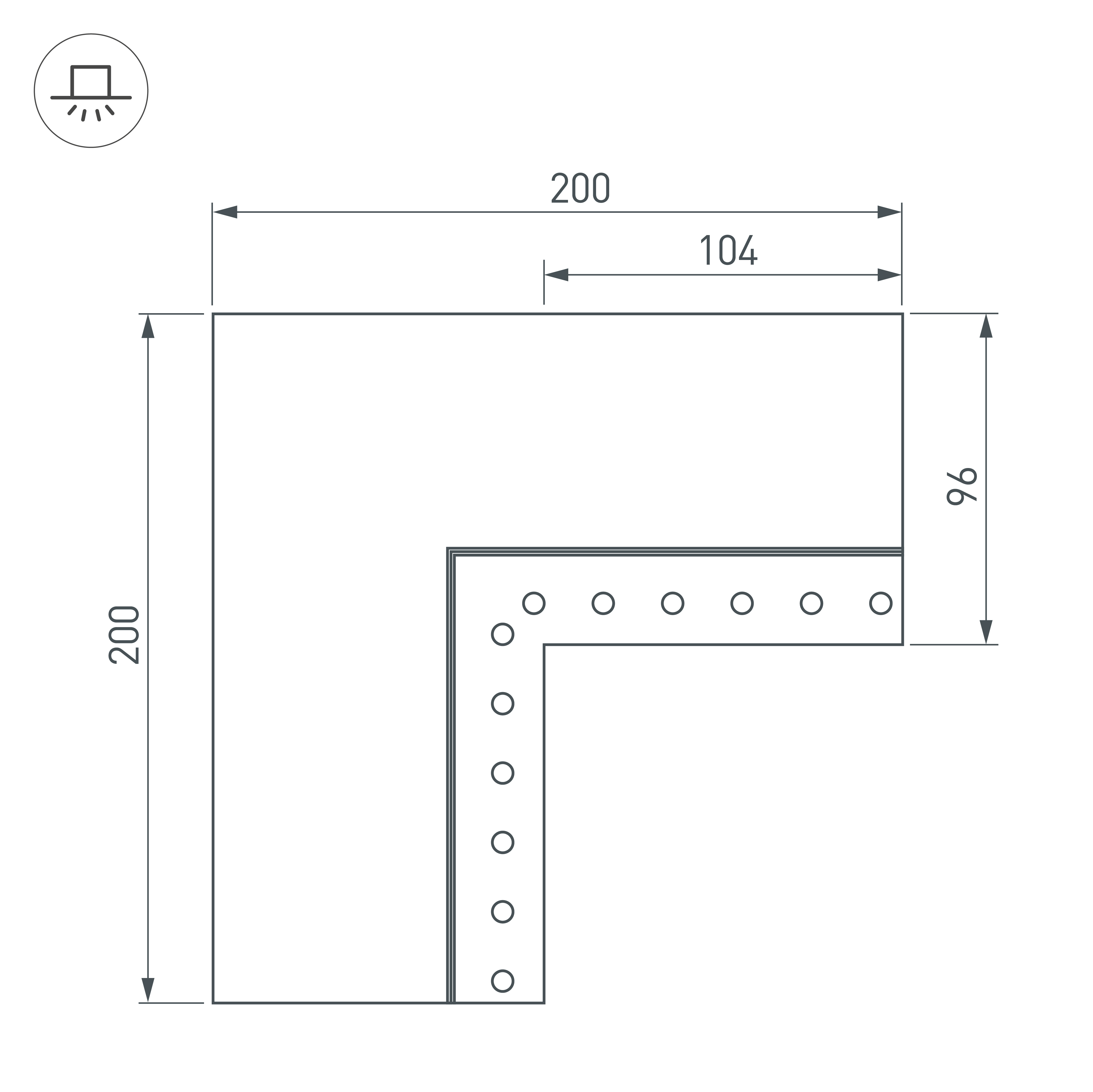 Внутренний прямой угол в сборе со скрытым фланцем под строительную отделку для соединения двух профилей SL-LINIA55-FANTOM-EDGE под прямым углом 90° в разных плоскостях в комплекте с матовым экраном и соединителями. Экран образует линию внутри угла. Применятся при изготовлении светильников сложной геометрии.