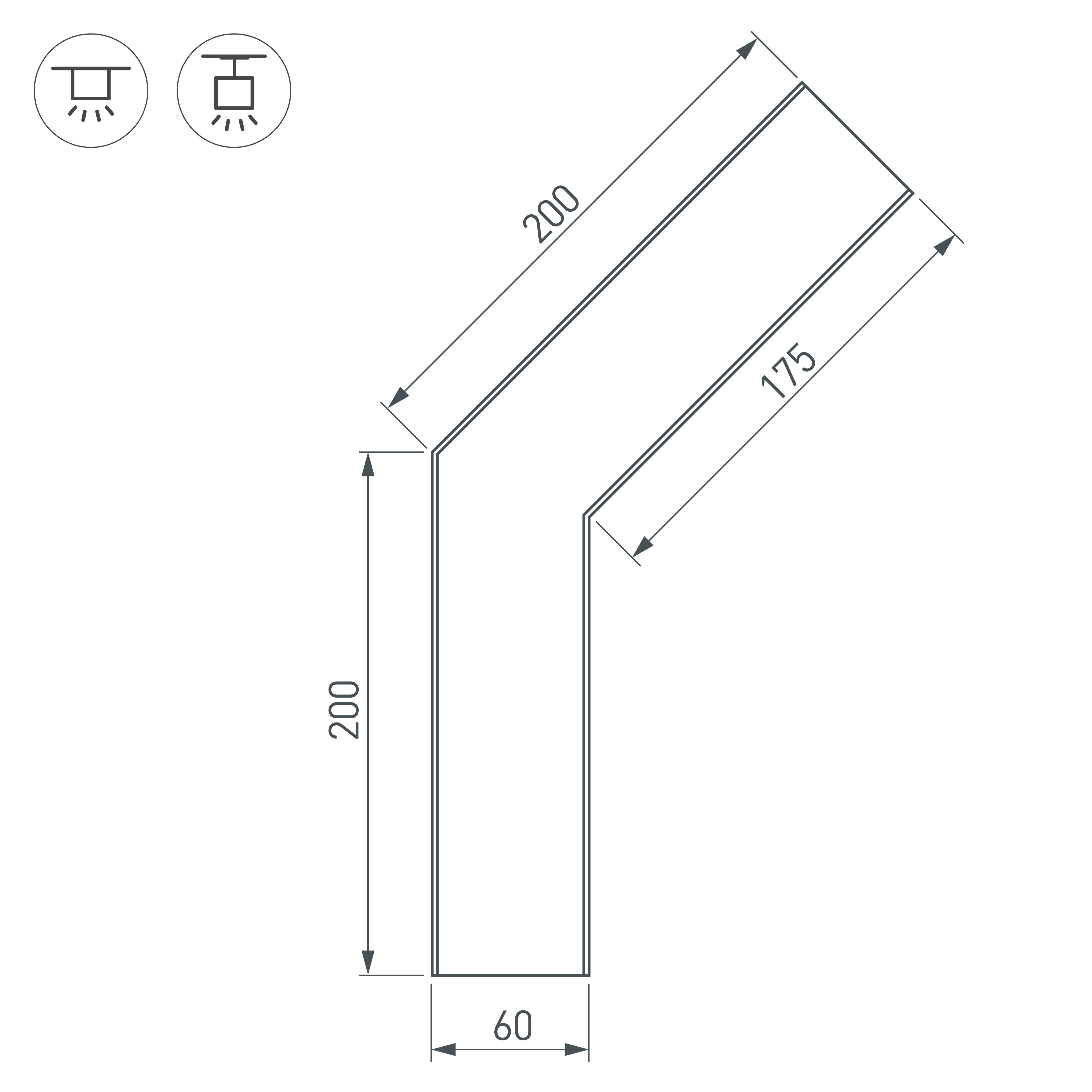 Угол в сборе для соединения двух профилей SL-LINE-6070 под углом 135° в одной плоскости в комплекте с матовым экраном и соединителями. Экран образует линию на плоскости. Применятся при изготовлении светильников сложной геометрии.